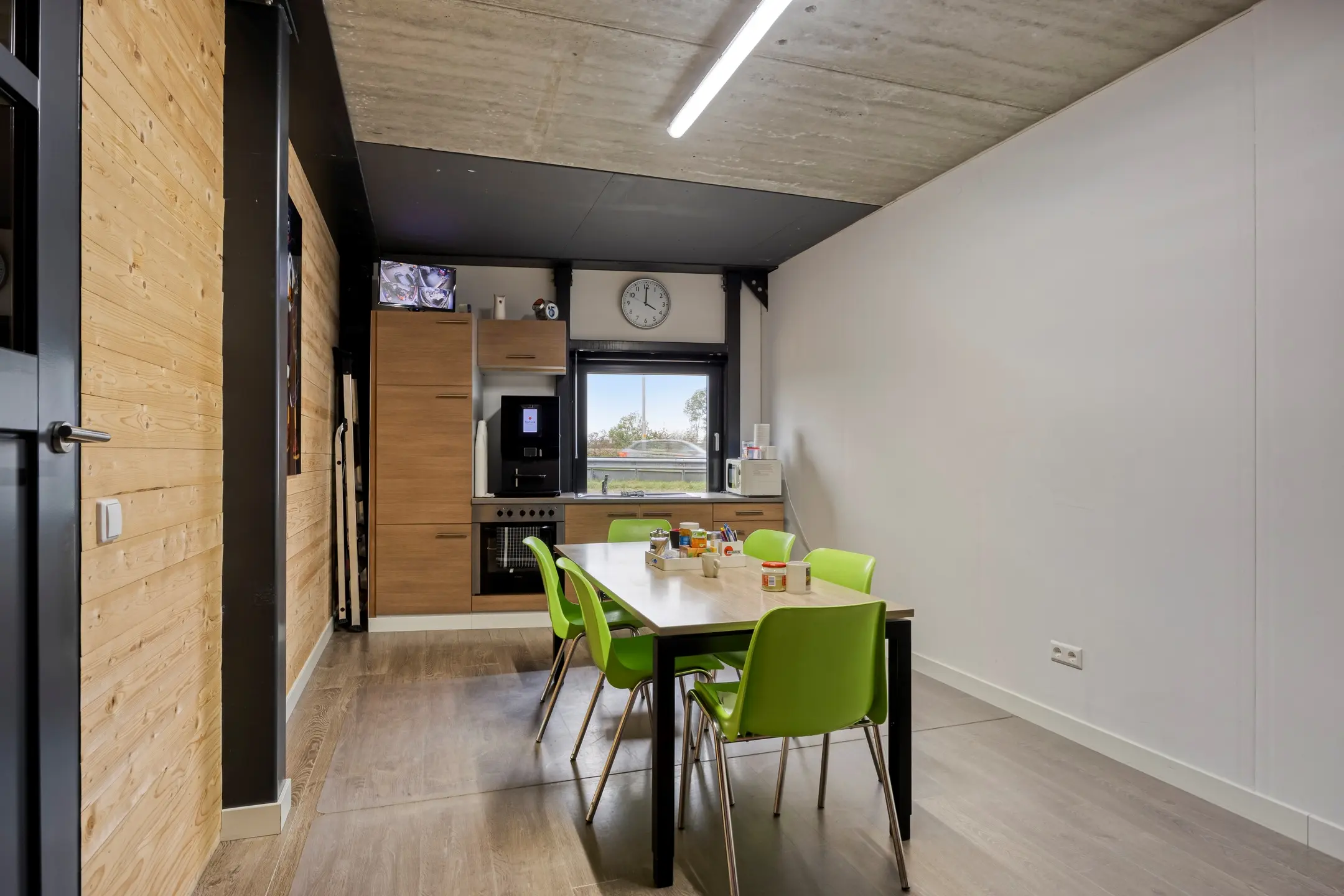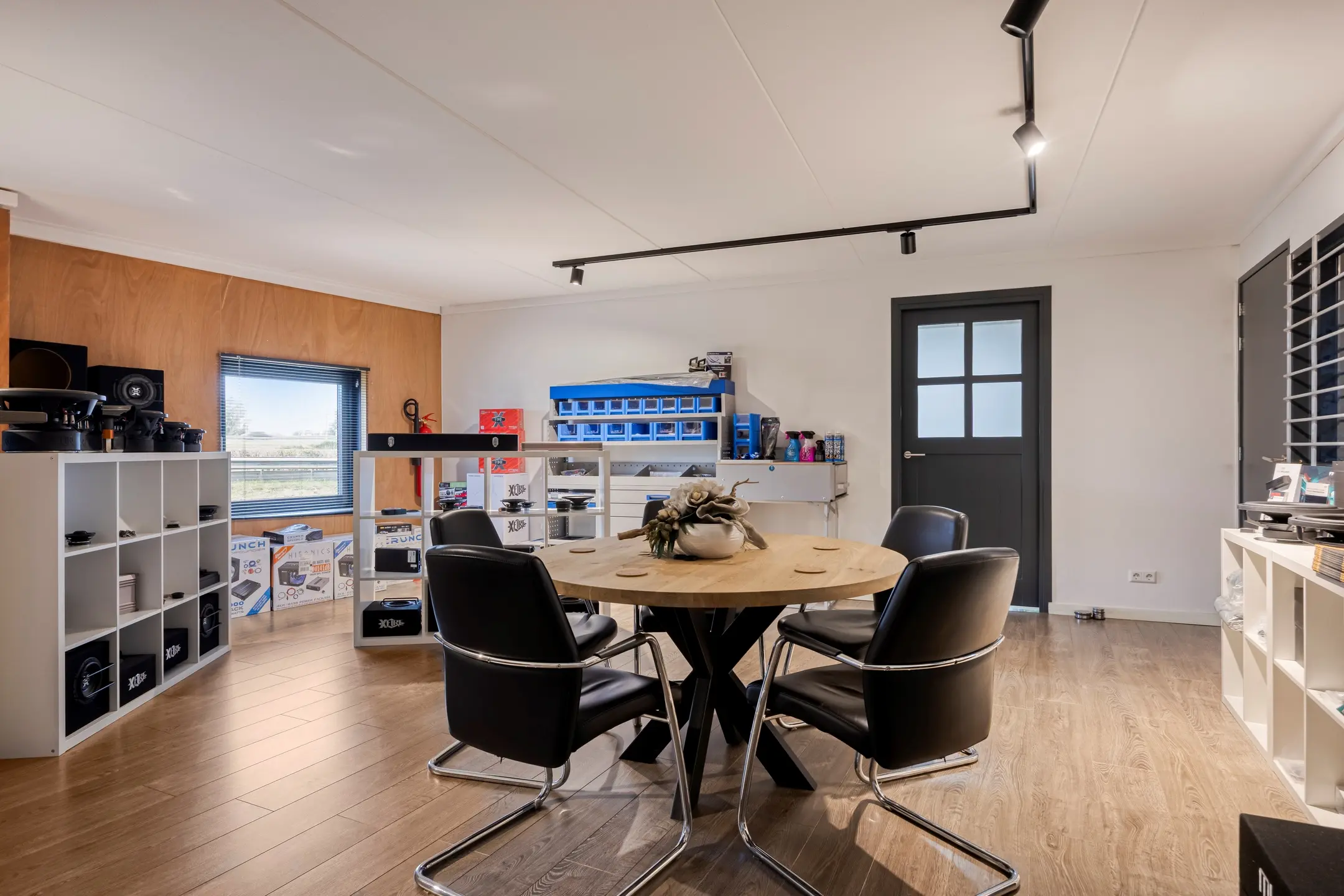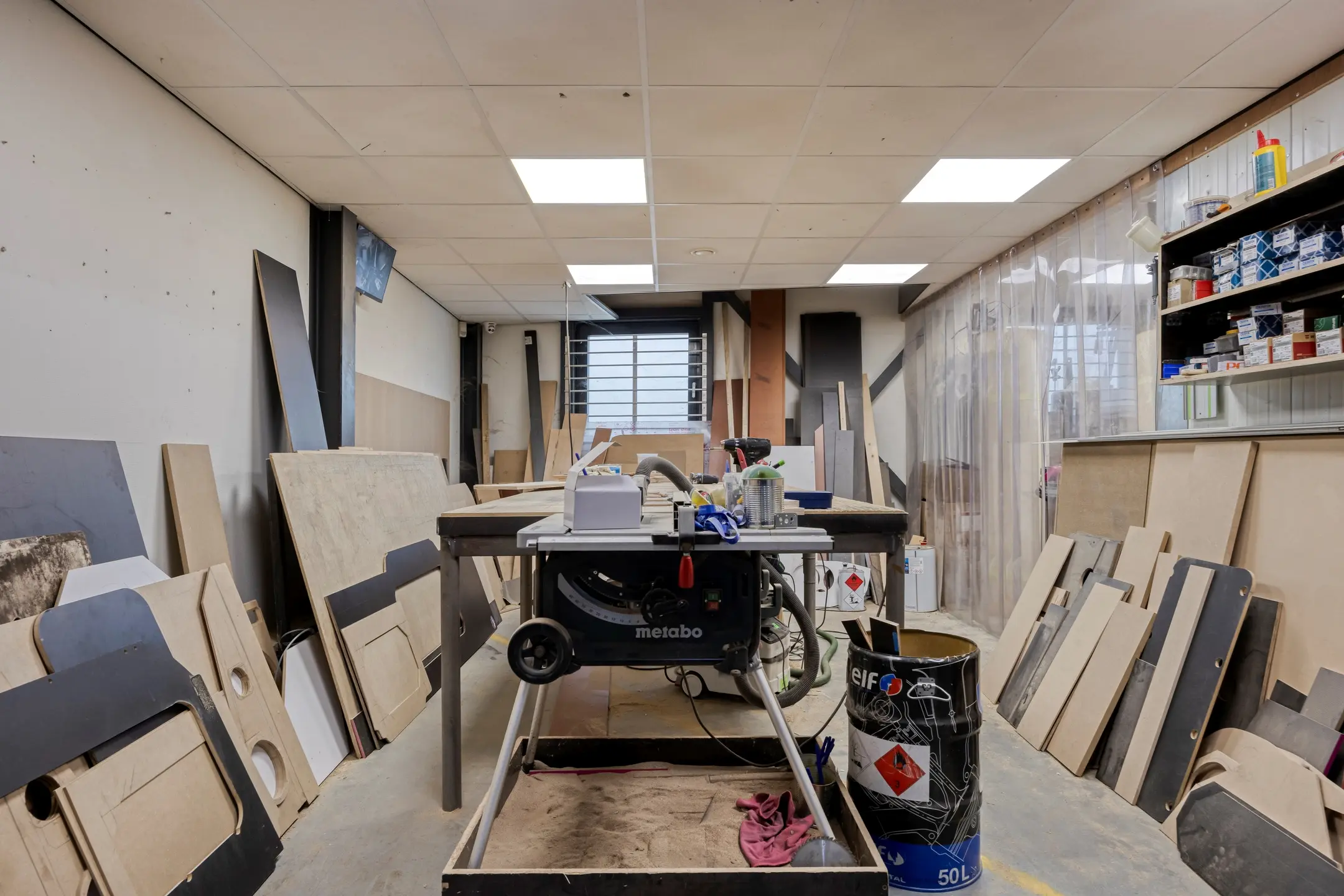 Bedrijfsunit van ca. 199 m² met bedrijfsruimte van ca. 142 m², kantoorruimte van ca. 57 m², elektrische overheaddeur, toilet en verdere aanhorigheden