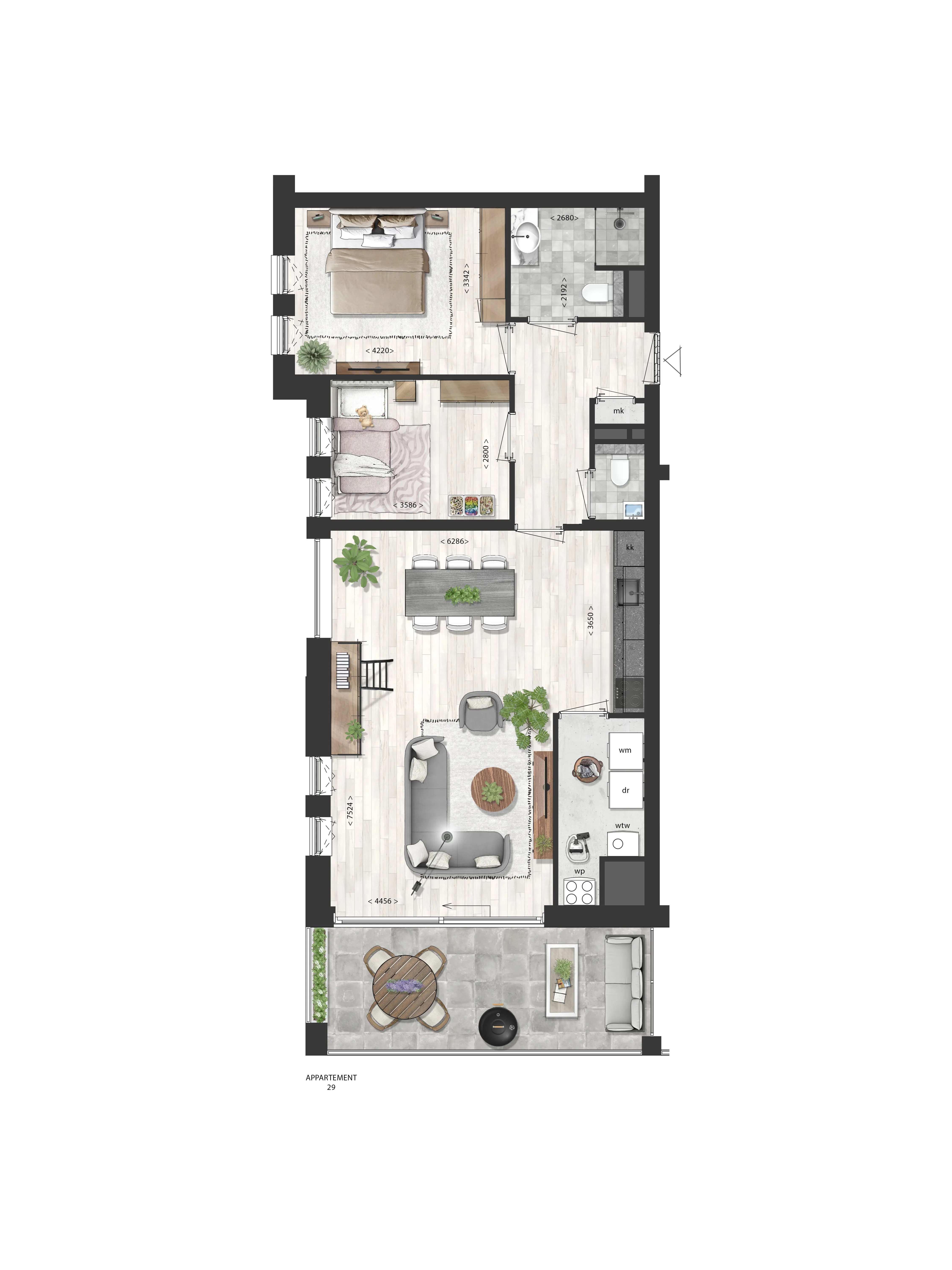 • 2 slaapkamers