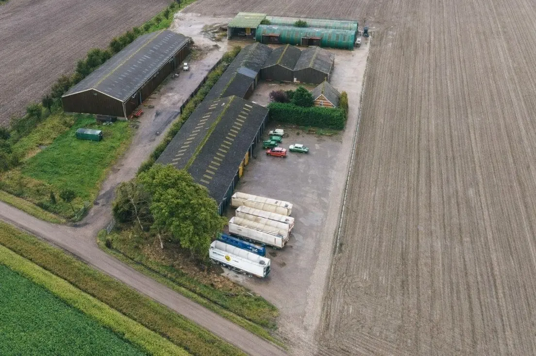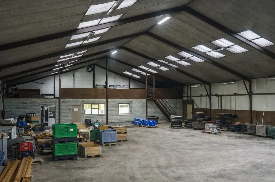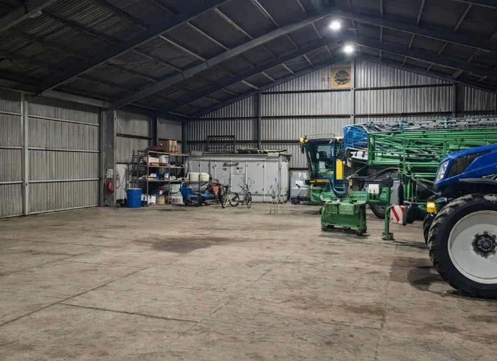 Werktuigenberging/loods ca. 1.000 m2 en stalling/loods ca. 1.200 m2, met bedrijfsruimte, kantine, sanitair, magazijn en verdere aanhorigheden.