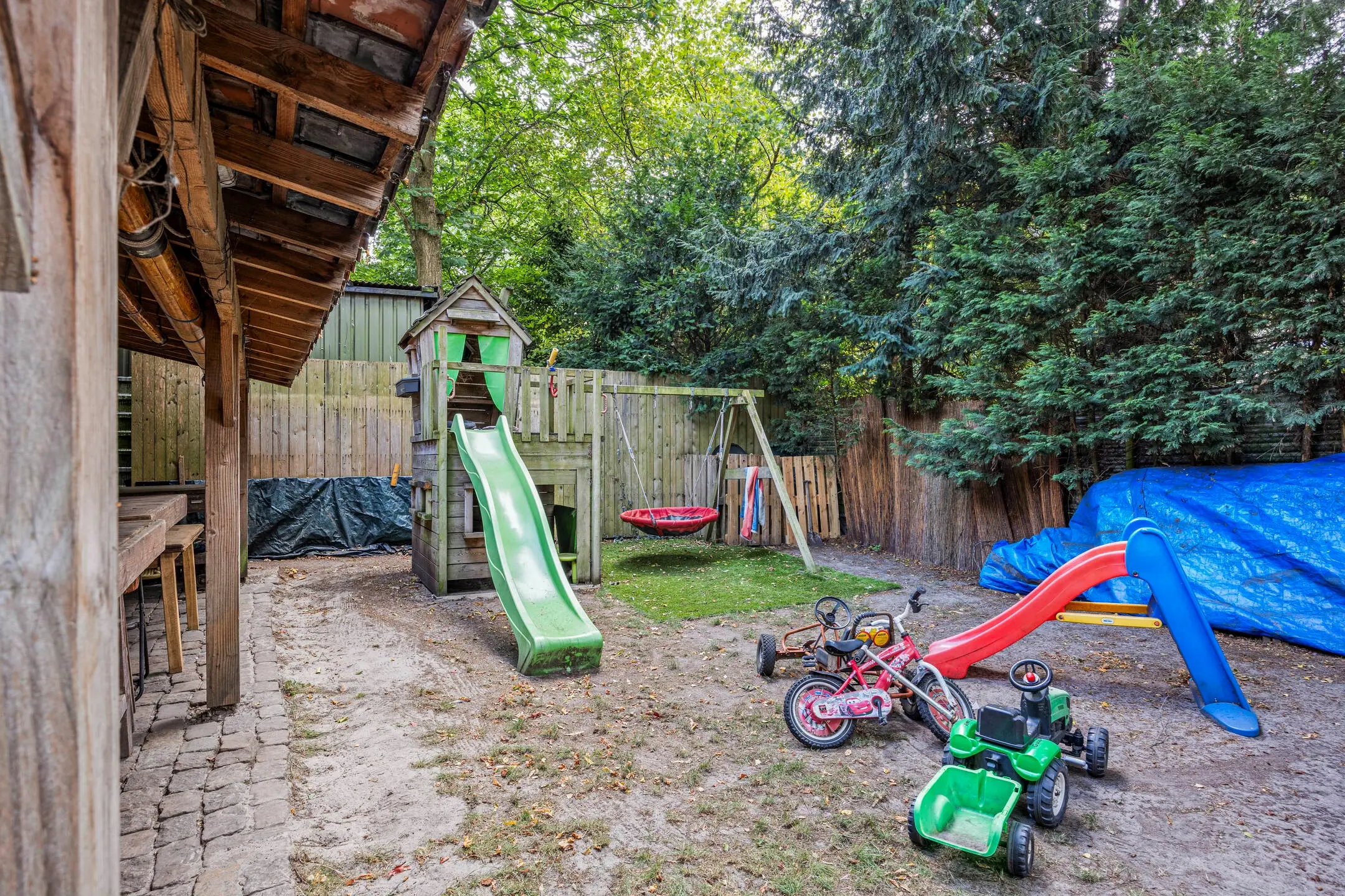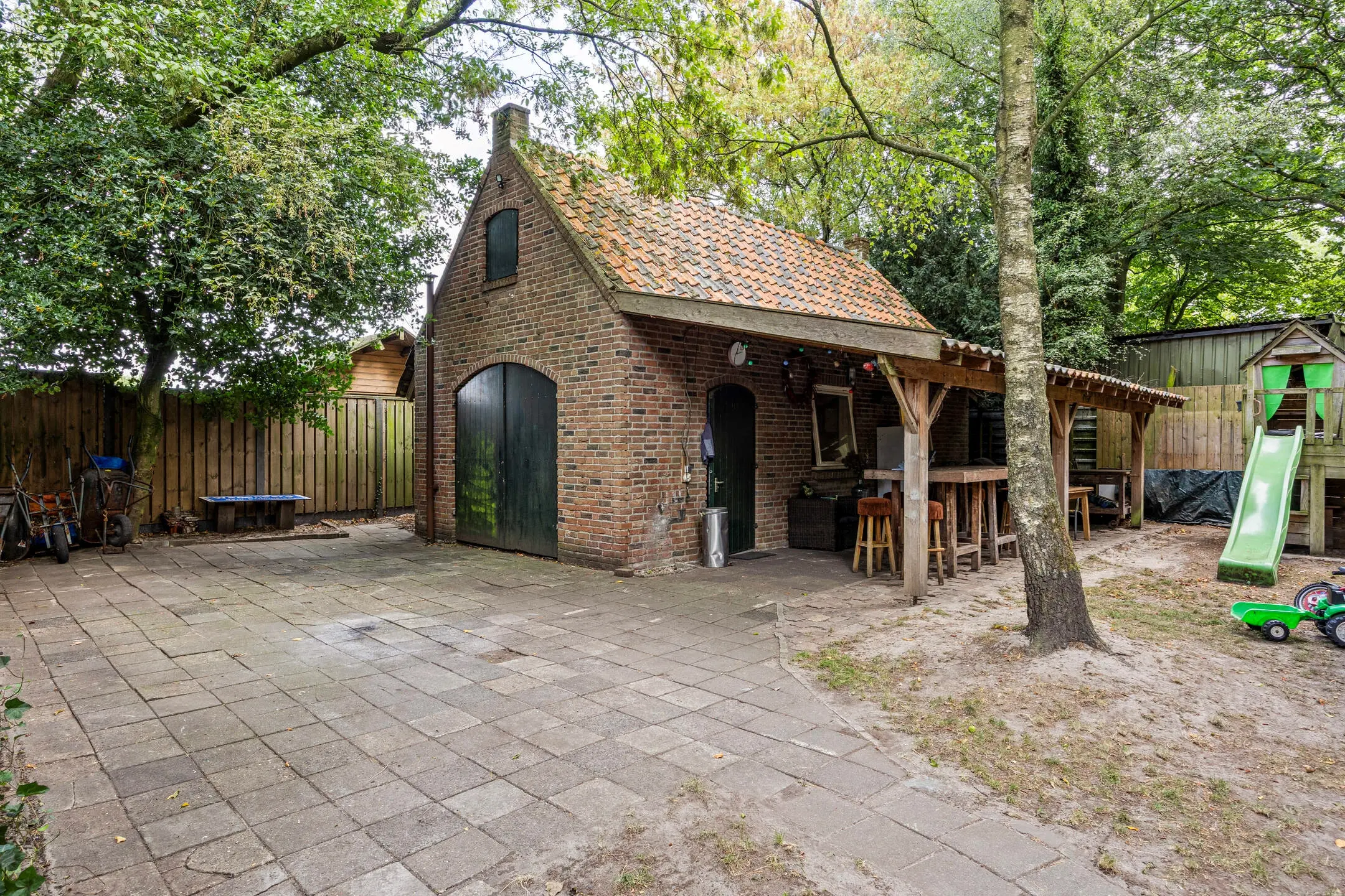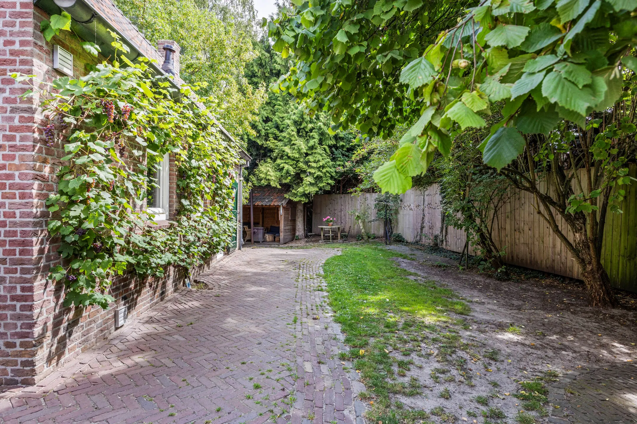 - Grote, fraai aangelegde tuin met overkapping, houtkachel, houtopslag, buitenkranen en waterput