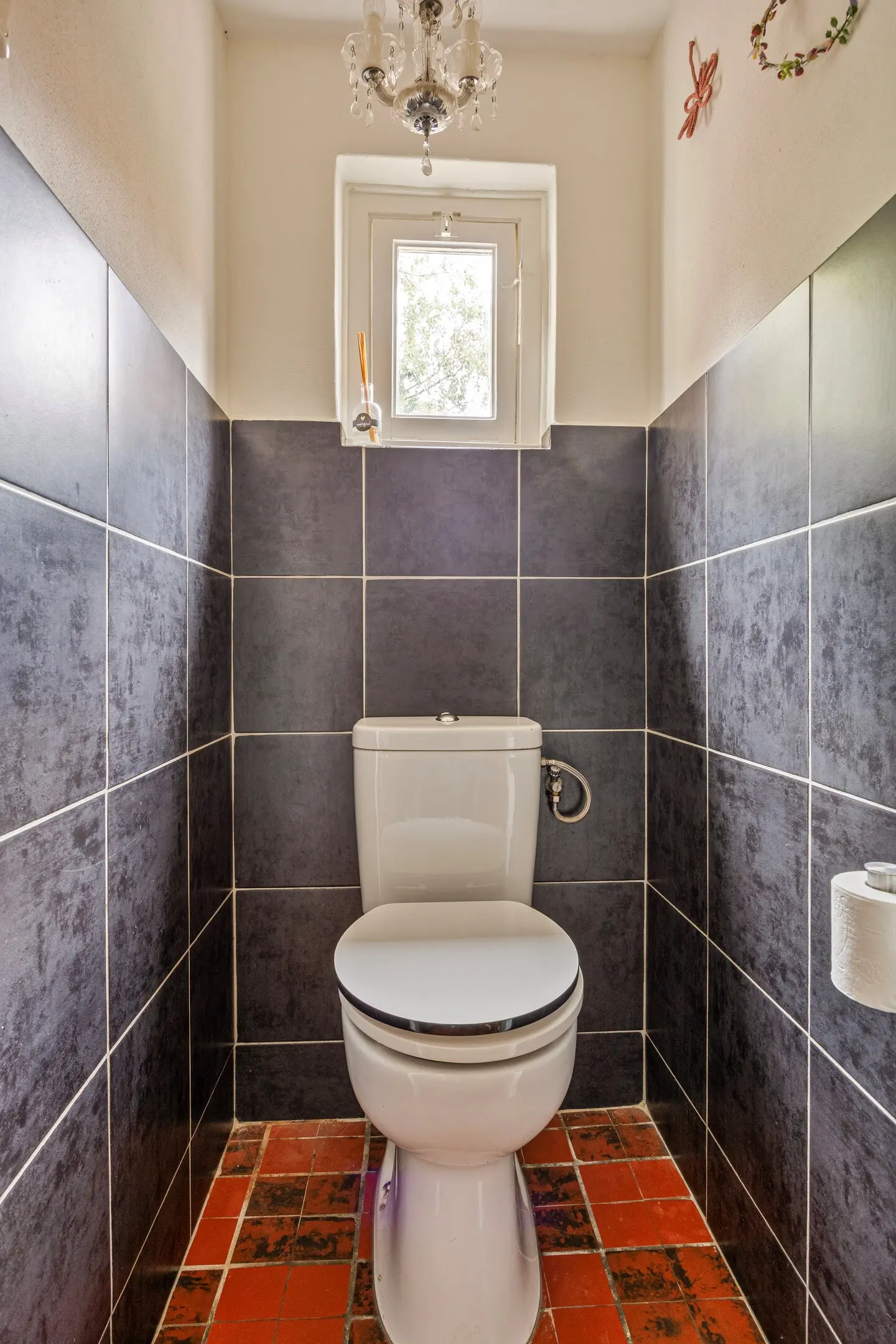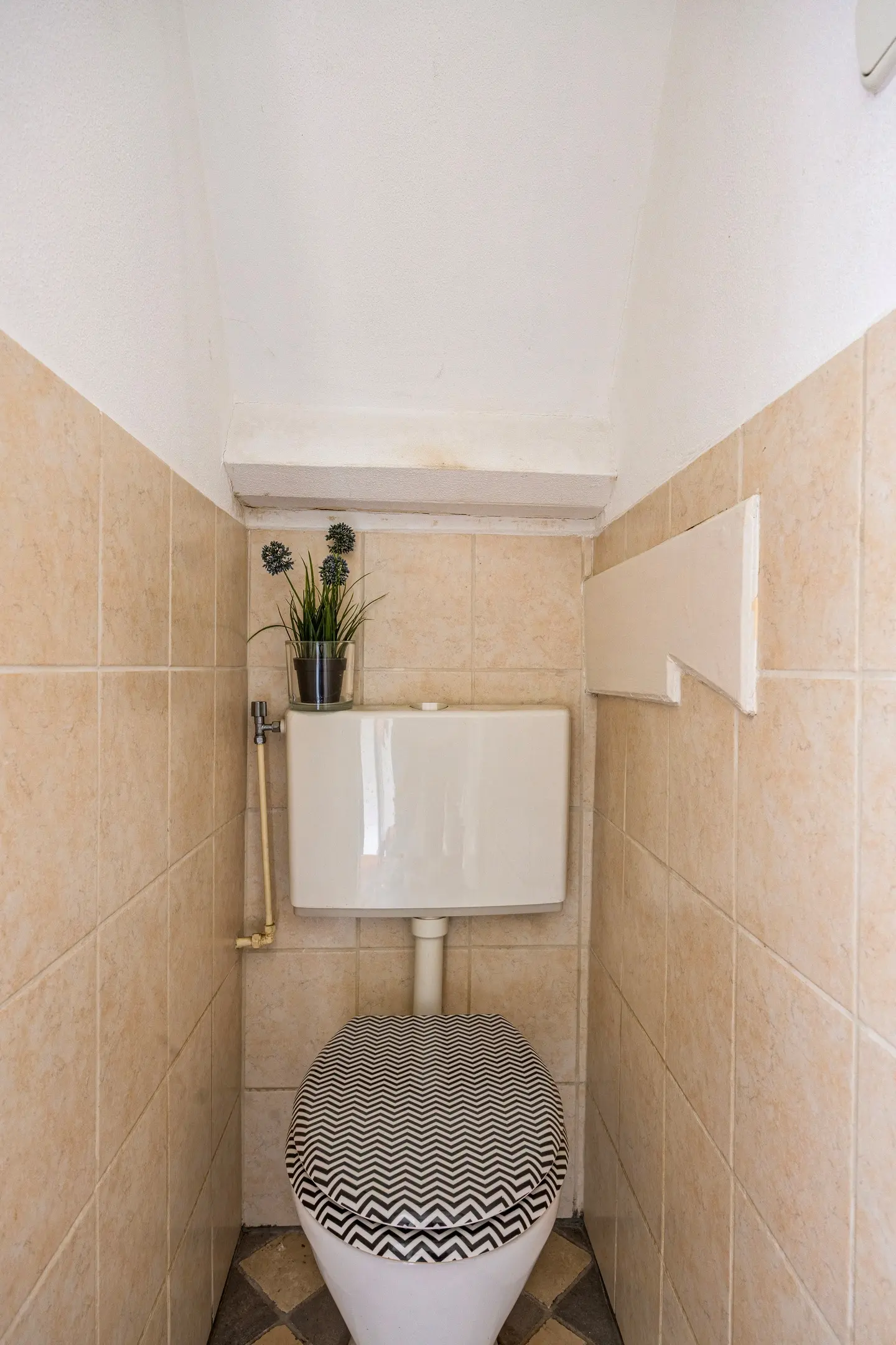 Naast de slaapkamers en badkamer bevindt zich op de eerste verdieping een apart toilet, eveneens voorzien van betegelde vloer en wanden en een plafond met stucwerk.
