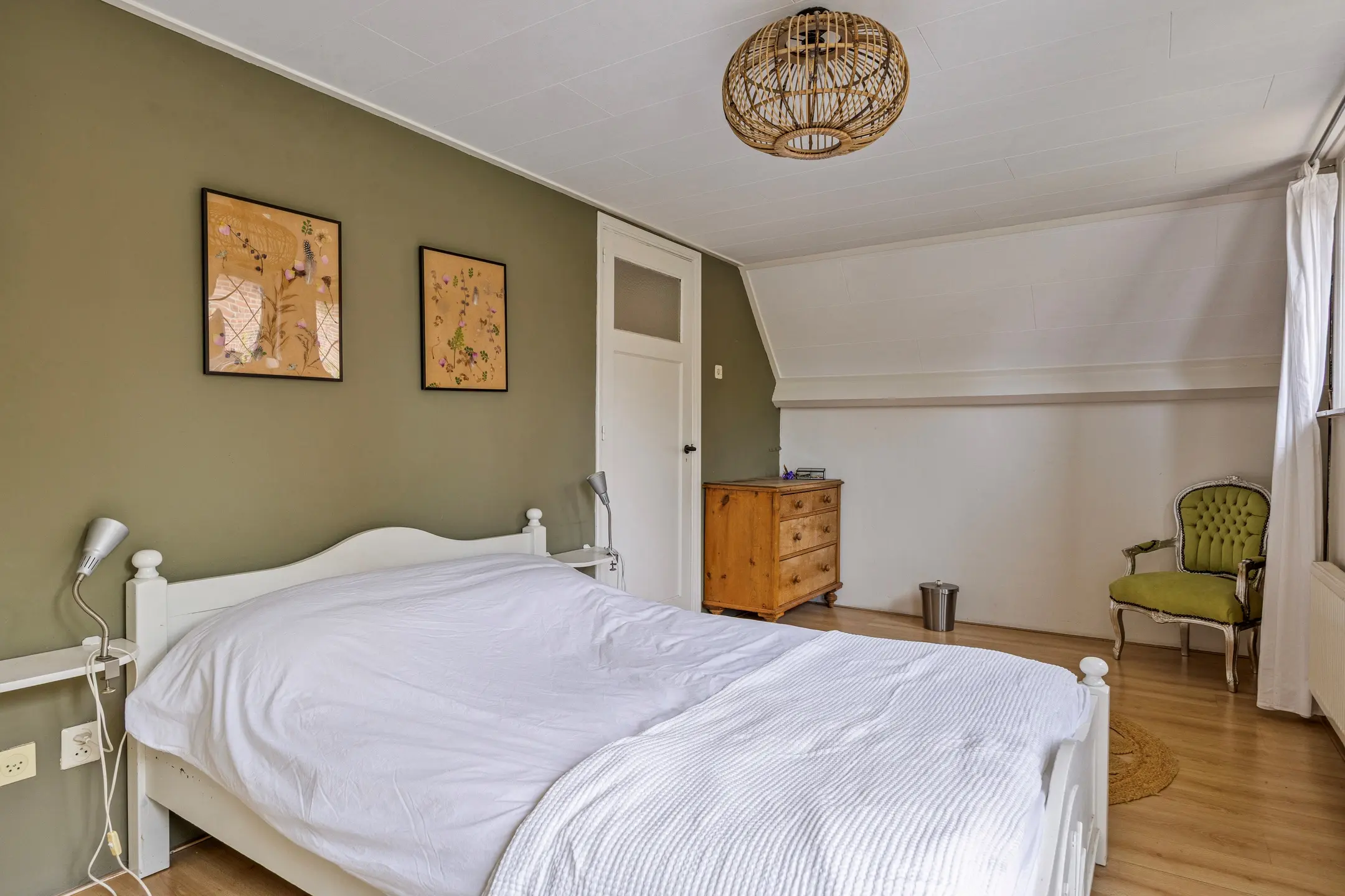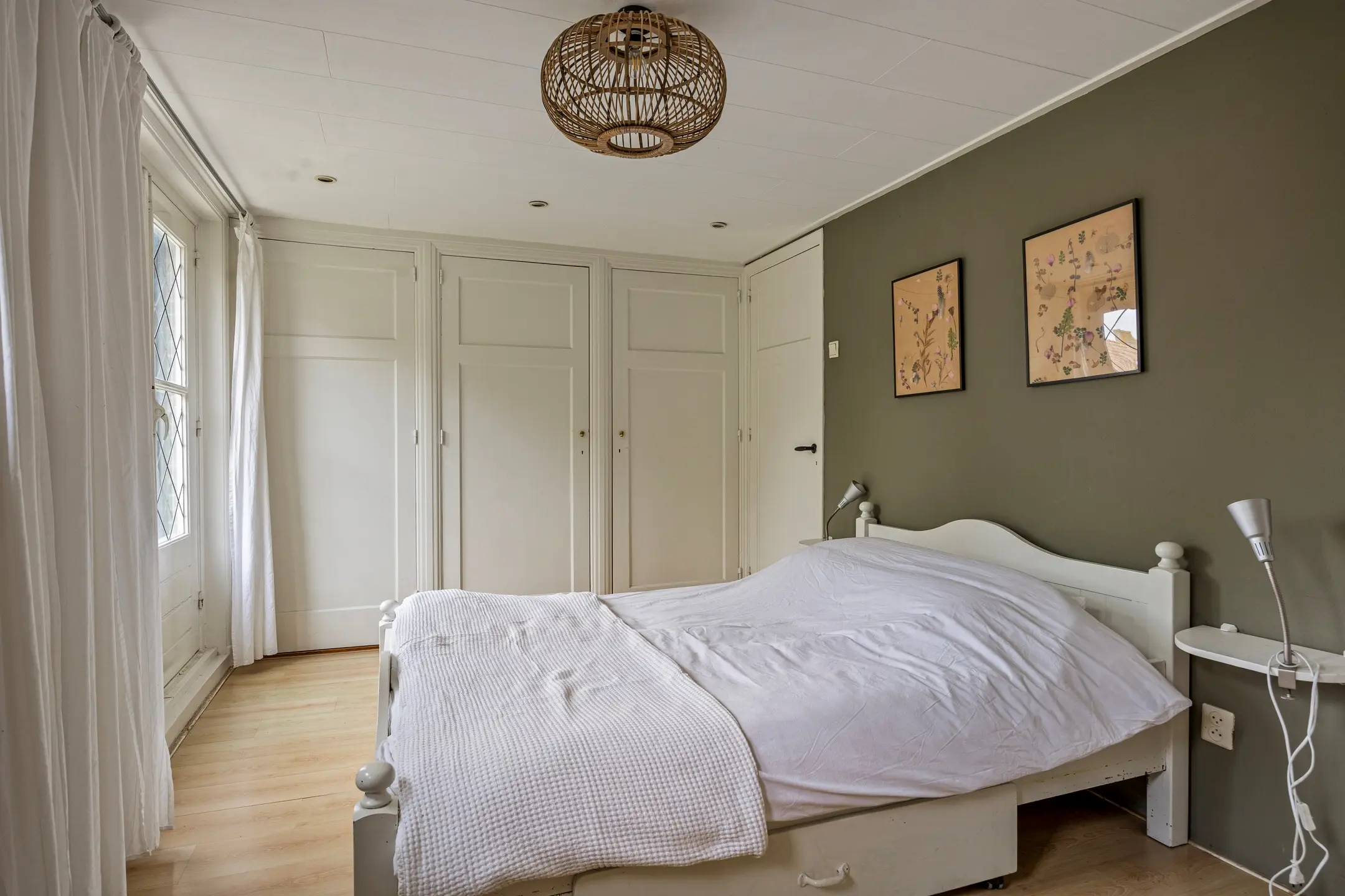 De royale master bedroom is gesitueerd aan de voorzijde van de woning en beschikt over een eigen balkon en een vaste kastenwand. De kamer voelt ruim en licht aan en is afgewerkt met gestucte wanden, een plafond voorzien van kunststof panelen en een laminaatvloer. Vanuit deze slaapkamer heeft u directe toegang tot de badkamer – een groot pluspunt voor comfort en privacy.