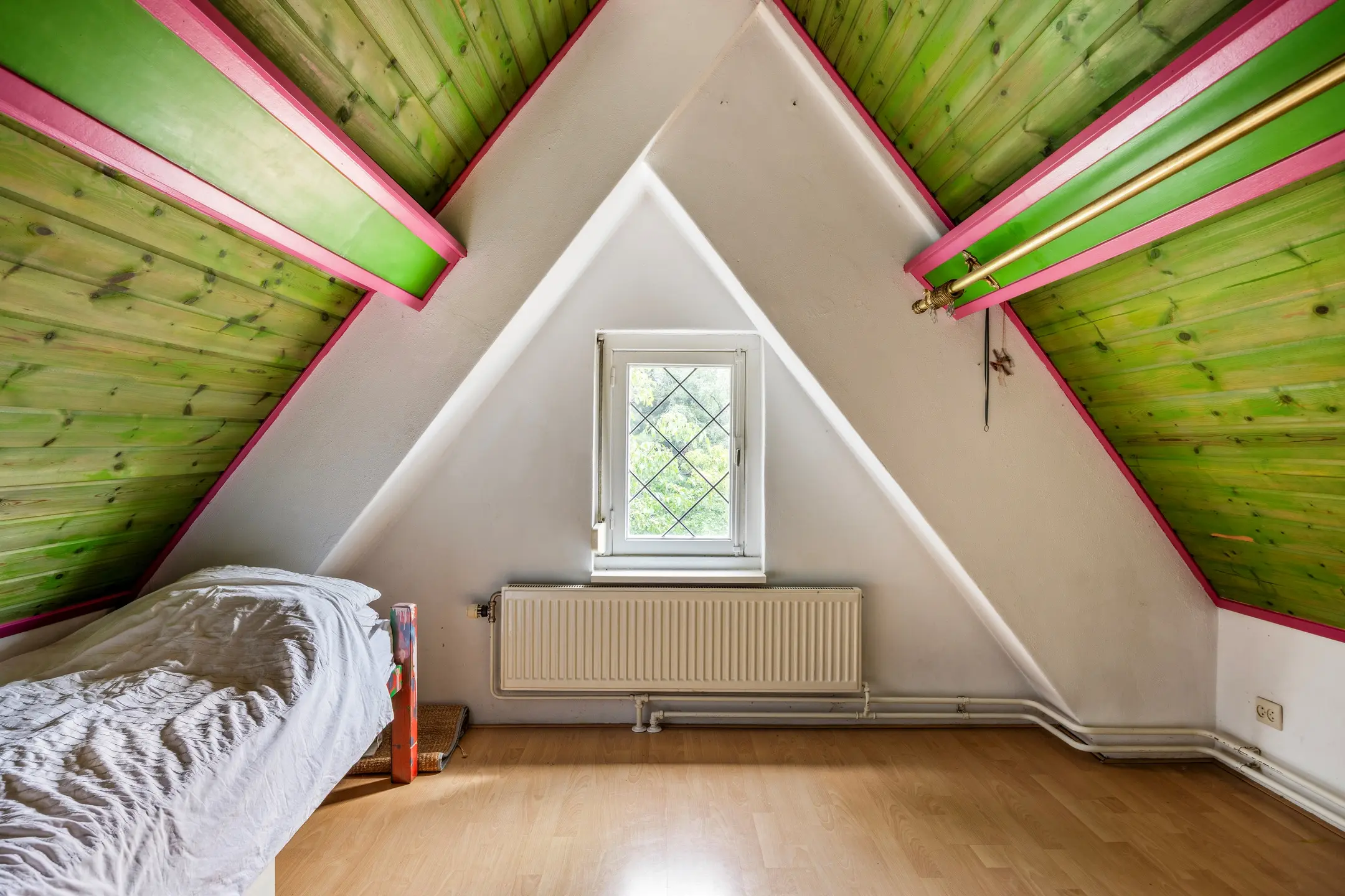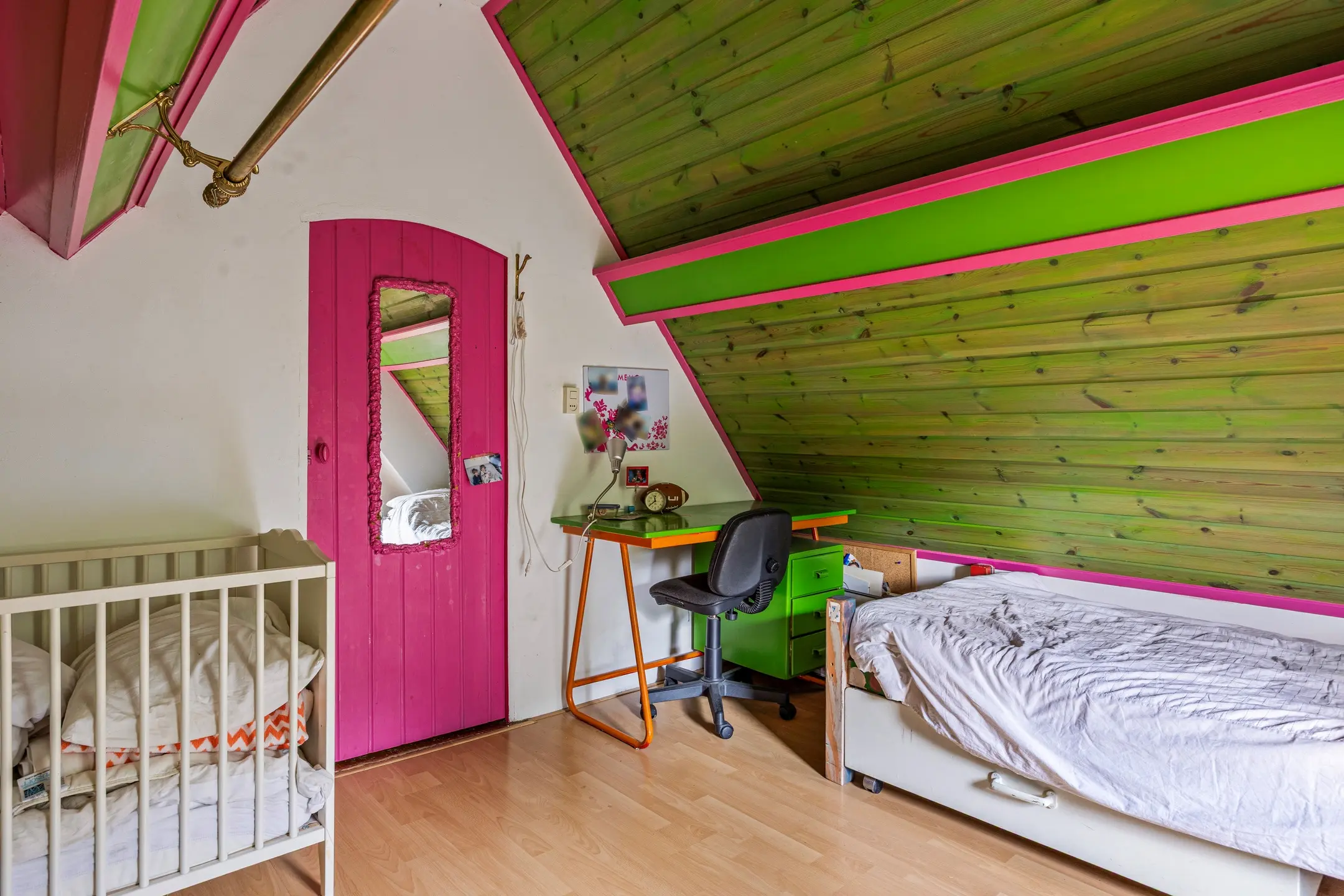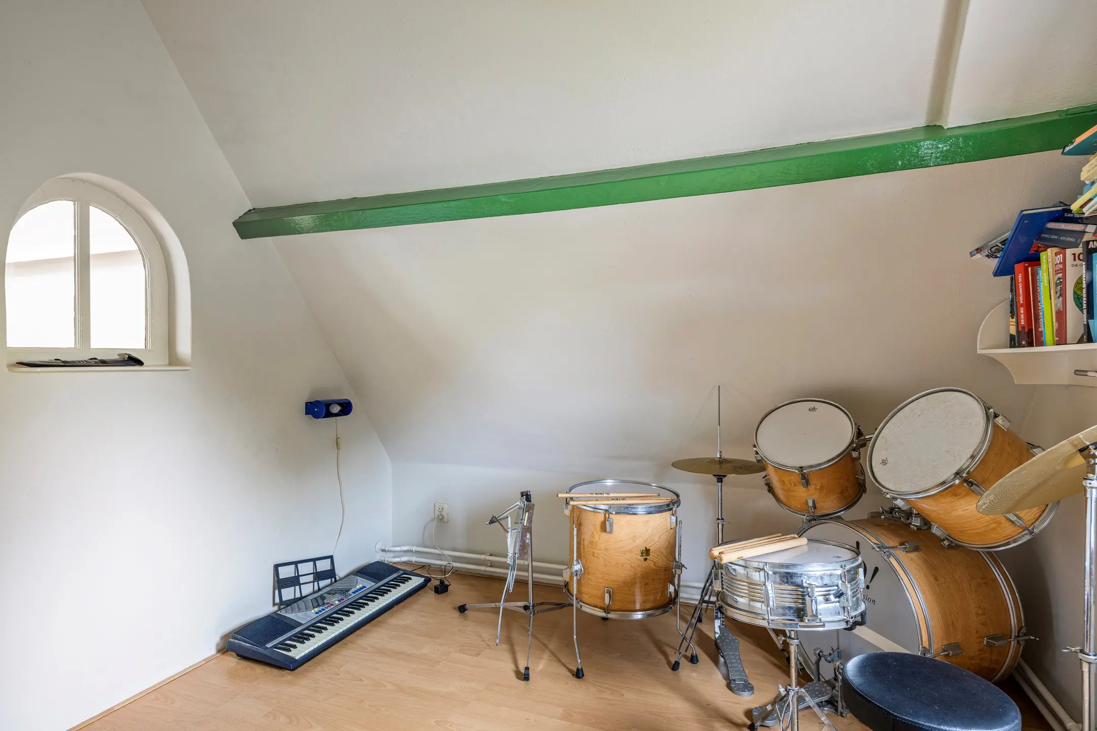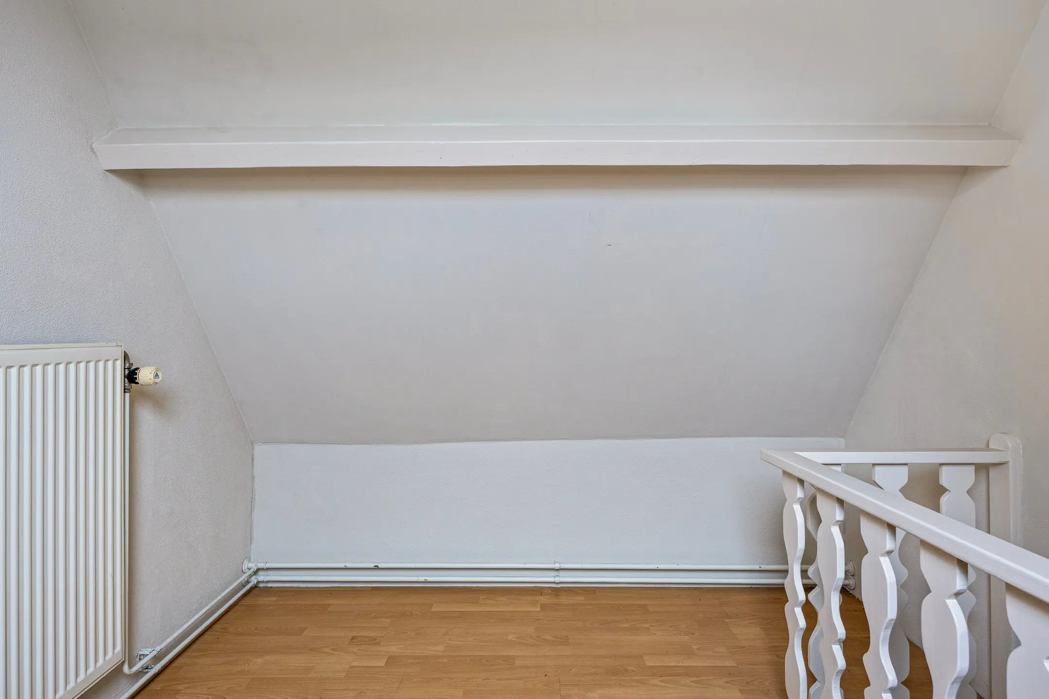 De overloop en één van de slaapkamers zijn voorzien van gestucte wanden en plafonds, terwijl de tweede slaapkamer is afgewerkt met gestucte wanden en een plafond met houten schrootjes. Beide kamers beschikken over laminaatvloeren en laten zich flexibel gebruiken: als logeerkamer, werkkamer, speelruimte of gewoon als extra bergruimte.