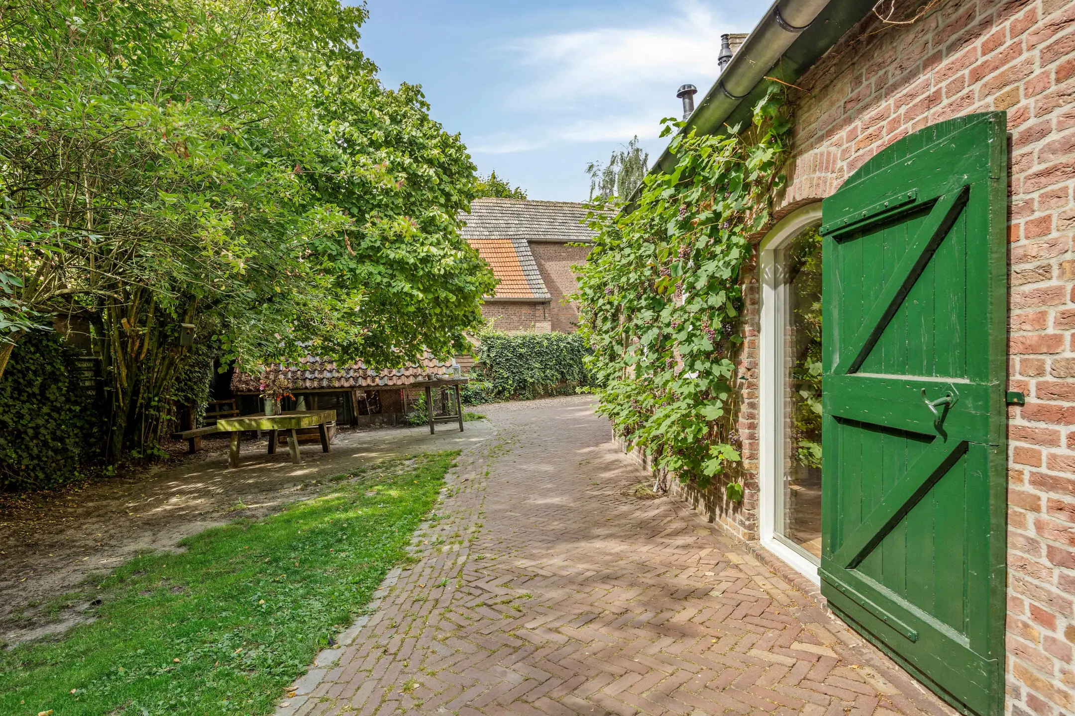 Rondom de woning ligt een grote, fraai aangelegde tuin die uitnodigt om elk seizoen van het buitenleven te genieten. Het erf biedt meerdere zitgelegenheden, waardoor er altijd een plek in de zon of schaduw te vinden is. Dankzij de combinatie van groen, bestrating en gezellige hoekjes ademt de tuin een prettige en gemoedelijke sfeer.
