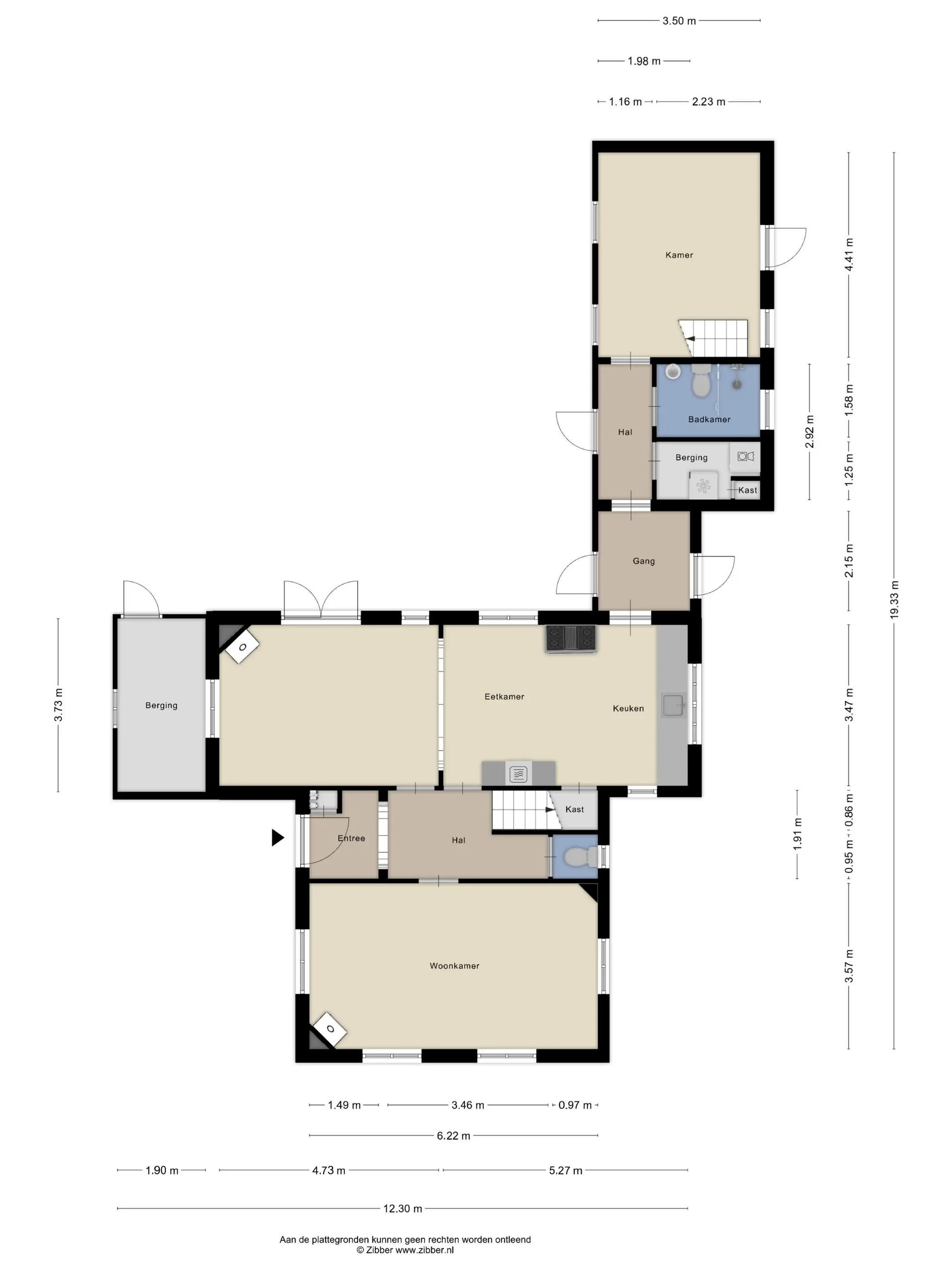 De begane grond omvat een sfeervolle woonkamer, een keuken met open verbinding naar de eetkamer en een toilet. Aan de achterzijde van de woning bevinden zich de badkamer en een multifunctionele ruimte. Deze multifunctionele ruimte is voorzien van vloerverwarming en beschikt over een vaste trapopgang naar de ruime zolder erboven, wat zorgt voor extra gebruiks- en indelingsmogelijkheden.