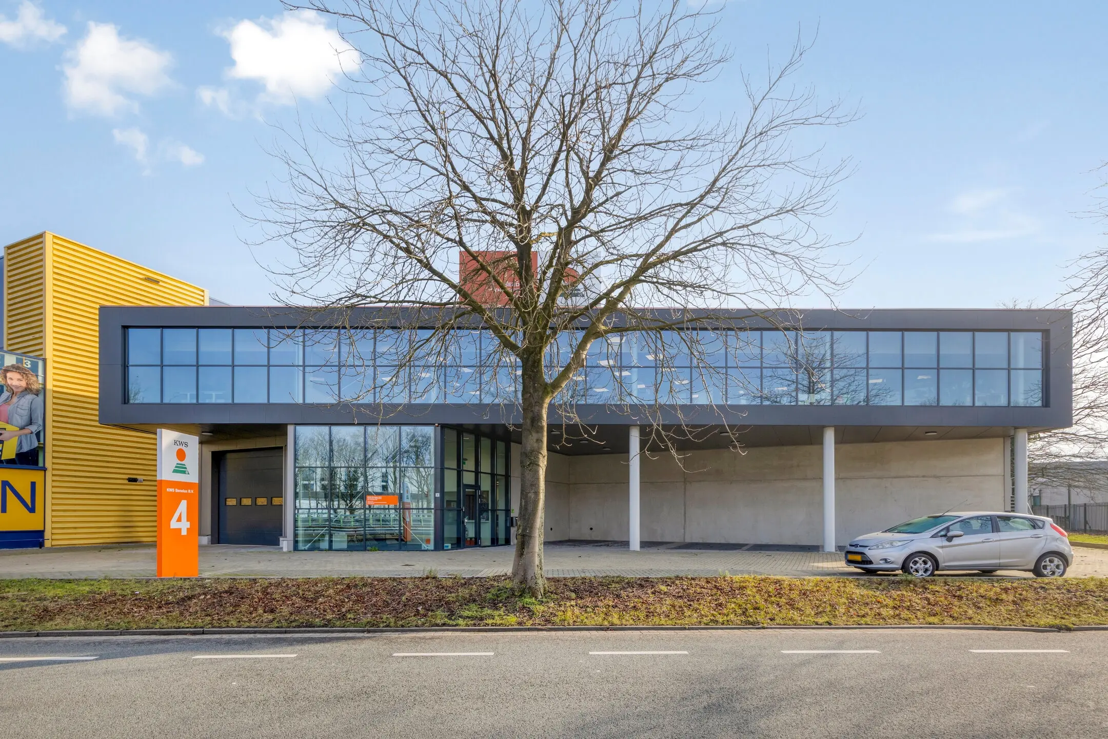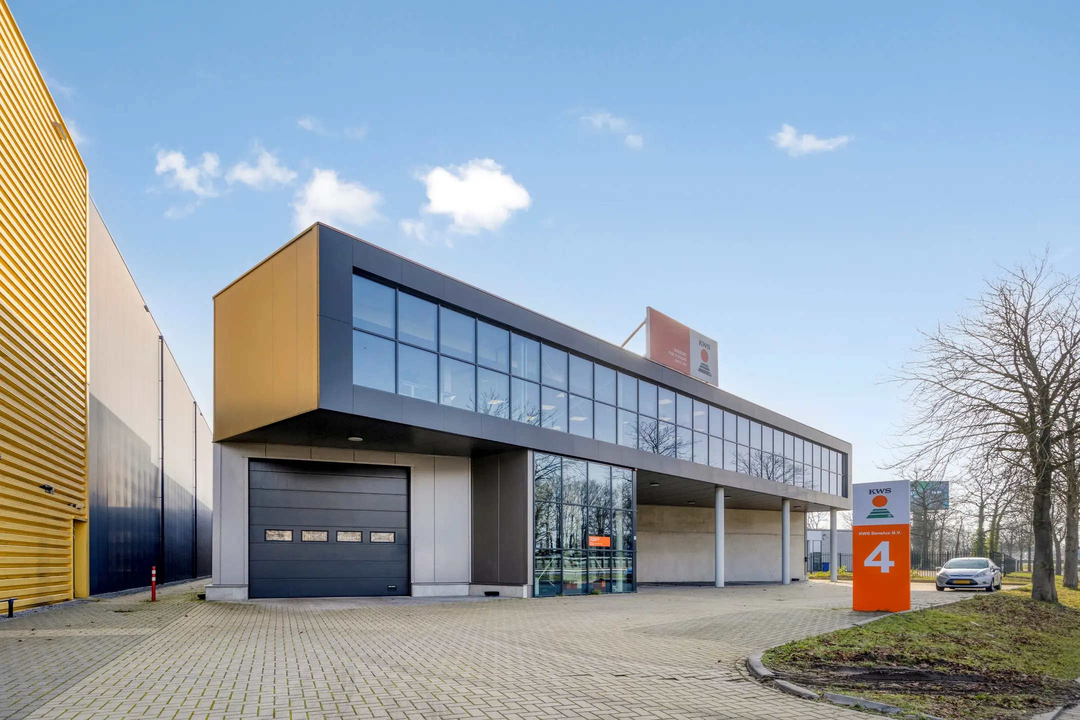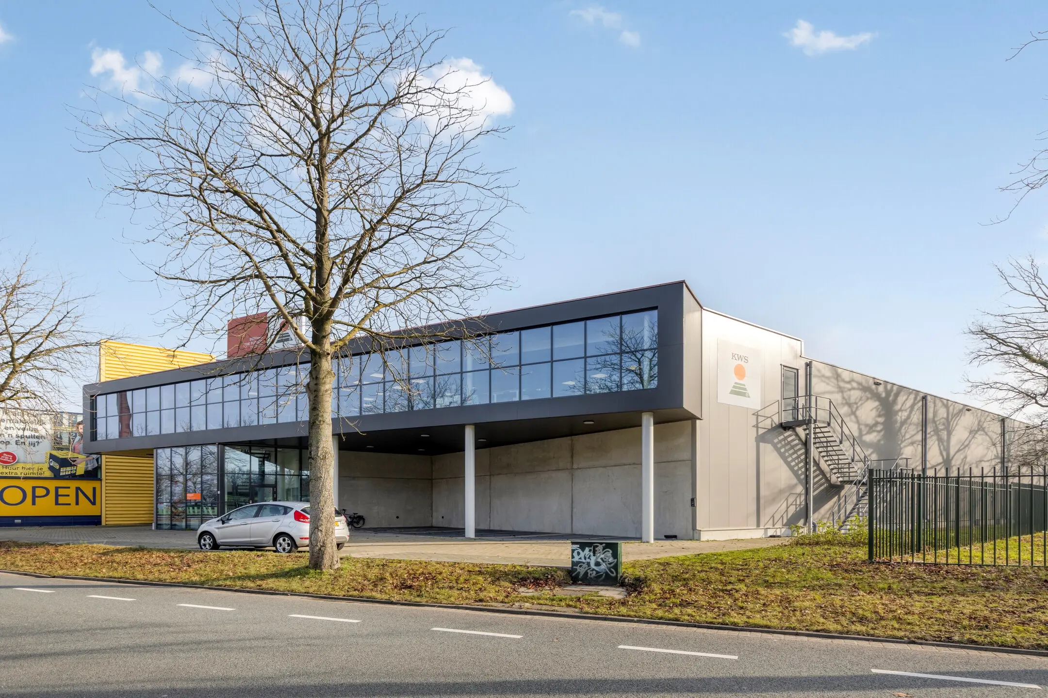 mix van bedrijfs- en utiliteitsbebouwing, passend bij een functioneel en zakelijk vestigingsmilieu.