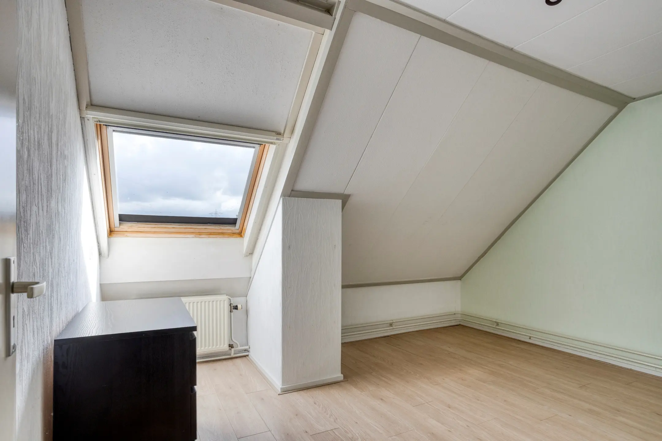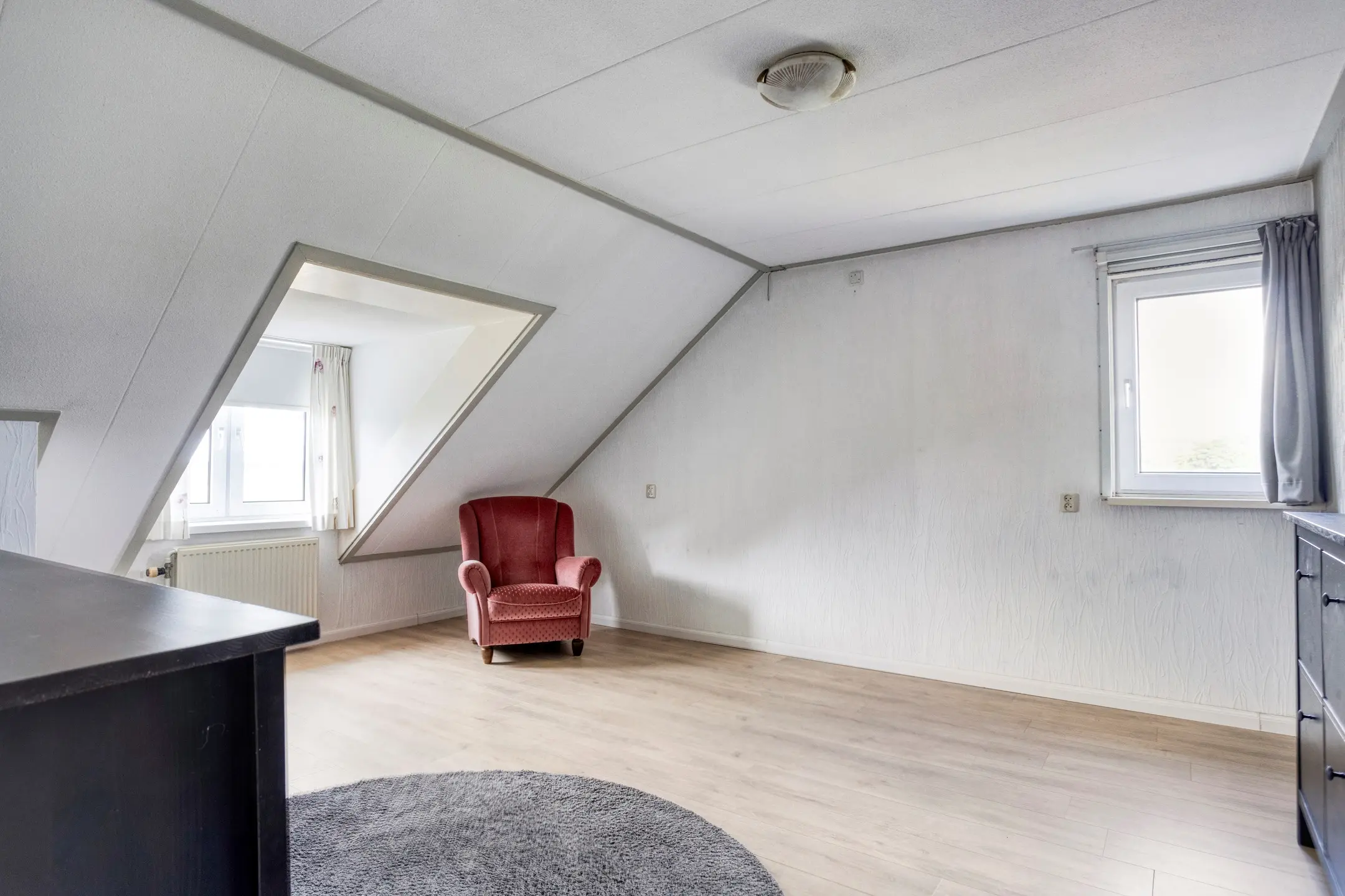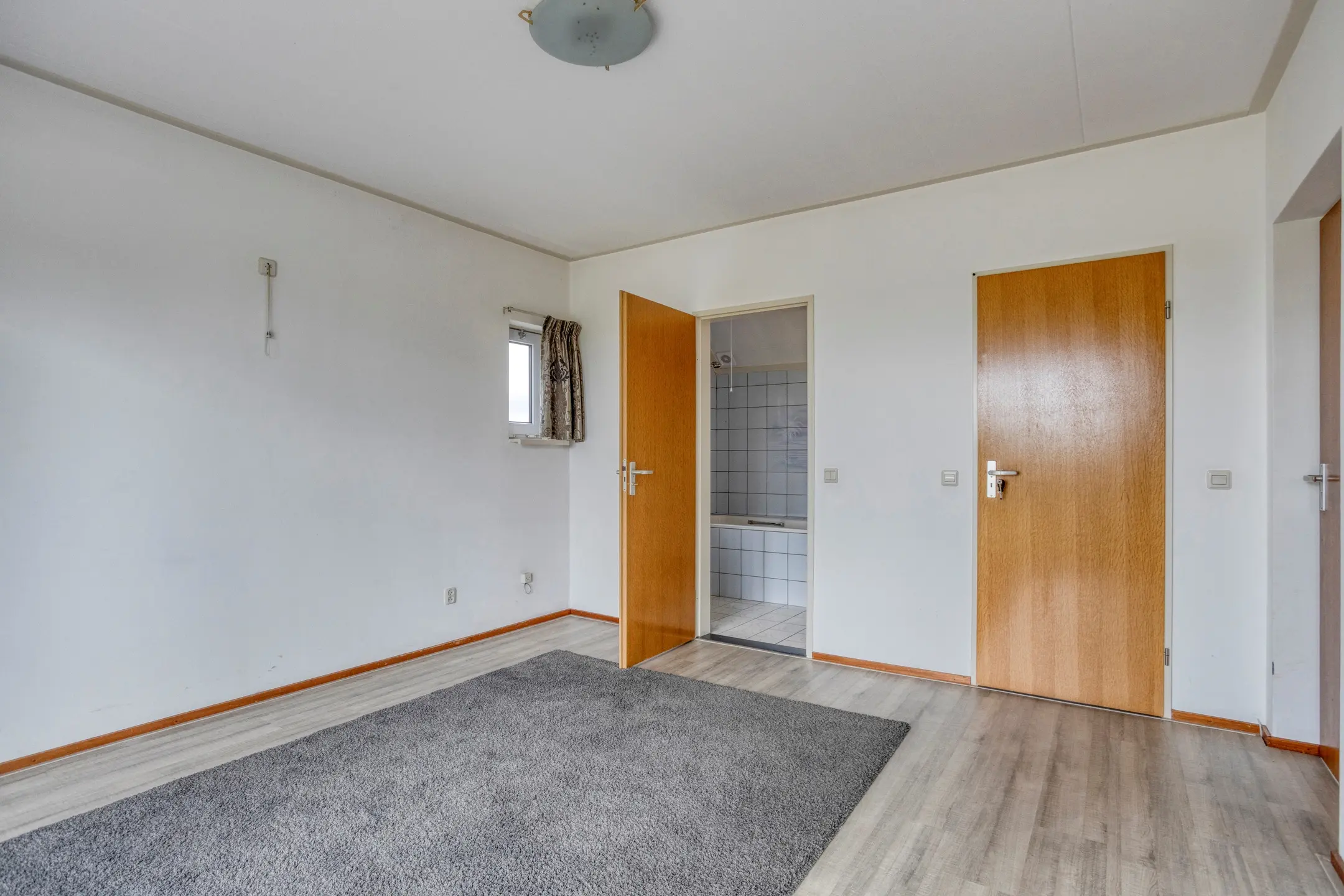 Vanuit de woonkamer is er toegang tot de slaapkamer. De vloer is hier afgewerkt met laminaat, de wanden en het plafond zijn afgewerkt met stucwerk. Het is een fijne, lichte ruimte. De badkamer op deze verdieping is direct toegankelijk vanuit deze slaapkamer. In de slaapkamer is tevens een vaste (inloop)kast aanwezig.