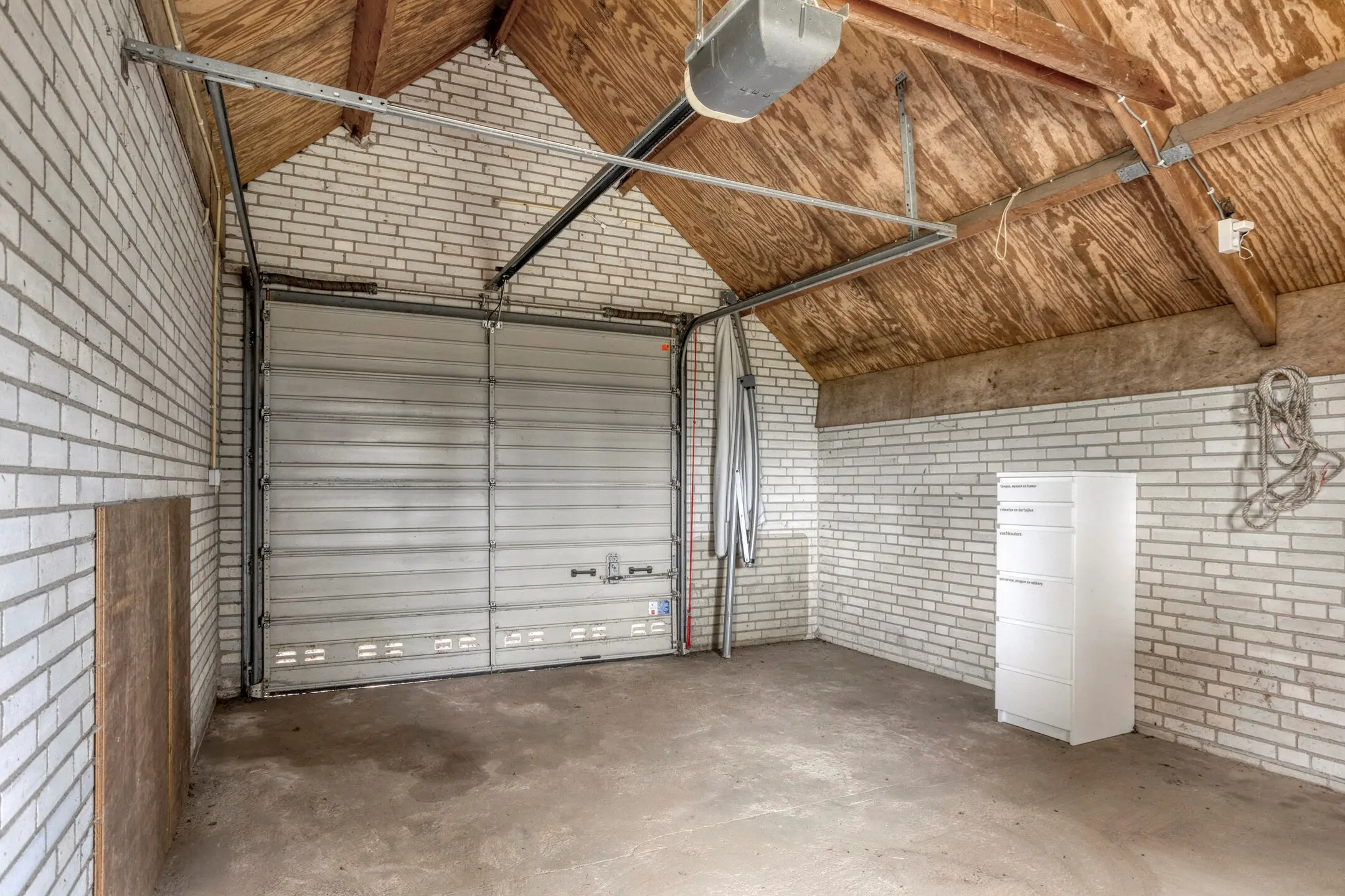 Aan de linkerzijde van de woning bevindt zich de vrijstaande stenen garage (circa 40 m2) en deze is toegankelijk middels een elektrische roldeur aan de voorzijde en een loopdeur aan de achterzijde. Deze kan uiteraard dienen voor het parkeren van een voertuig en/of fiets, maar uiteraard kan deze ruimte ook gebruikt worden voor opslag of als klusruimte. Er ligt een betonnen vloer met vloerisolatie en elektra is aanwezig.
