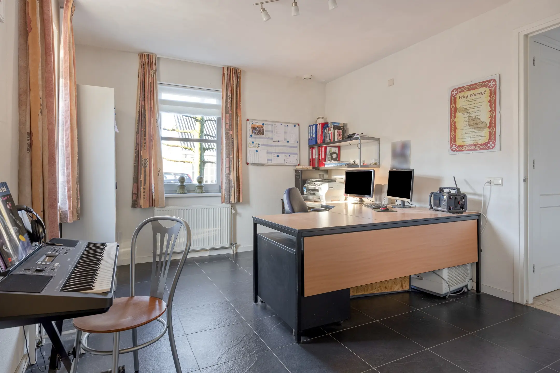Op de begane grond bevindt zich een ruime multifunctionele kamer met aangrenzende bergruimte. Deze ruimte is momenteel in gebruik als kantoor, maar biedt volop mogelijkheden voor een andere invulling, zoals een werkkamer, praktijkruimte of slaapkamer op de begane grond.