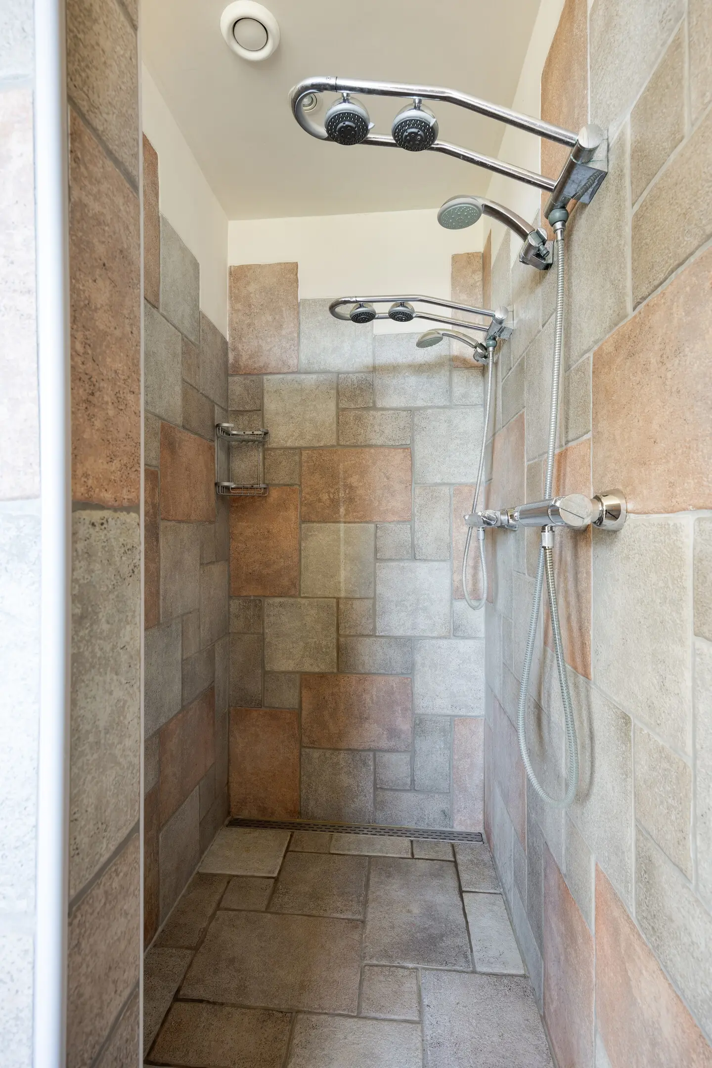 De badkamer is compleet en comfortabel uitgevoerd en voorzien van vloerverwarming, een designradiator, een duo inloopdouche, een ligbad en een royale wastafel. De ruimte is afgewerkt met een betegelde vloer en een combinatie van tegelwerk en stucwerk op de wanden, wat zorgt voor een evenwichtig geheel.