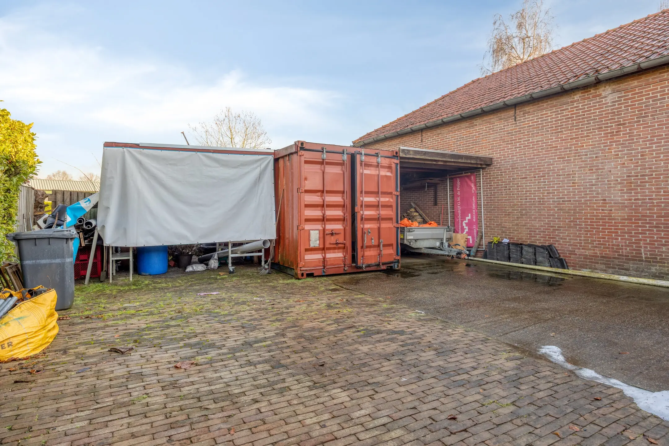 Op het perceel bevinden zich diverse bijgebouwen, waaronder een loods, berging, overkapping en een container. De loods is voorzien van water en elektra en geschikt voor opslag en hobbymatig gebruik binnen de geldende mogelijkheden. Het erf is ruim en functioneel ingericht en beschikt over twee opritten, wat zorgt voor een goede ontsluiting en ruime parkeergelegenheid op eigen terrein.