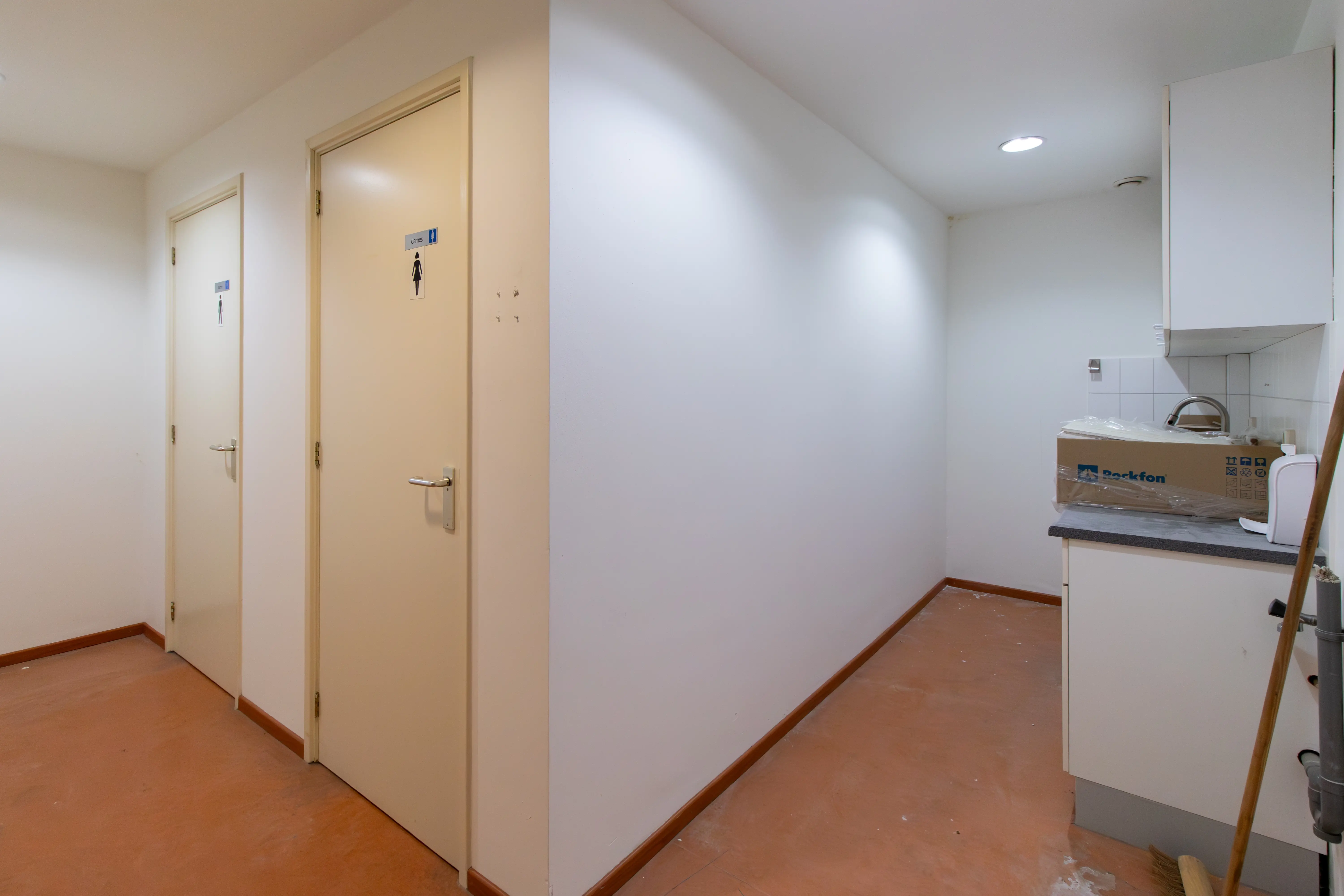 - Heren: 2x urinoir, toilet en handwasbak