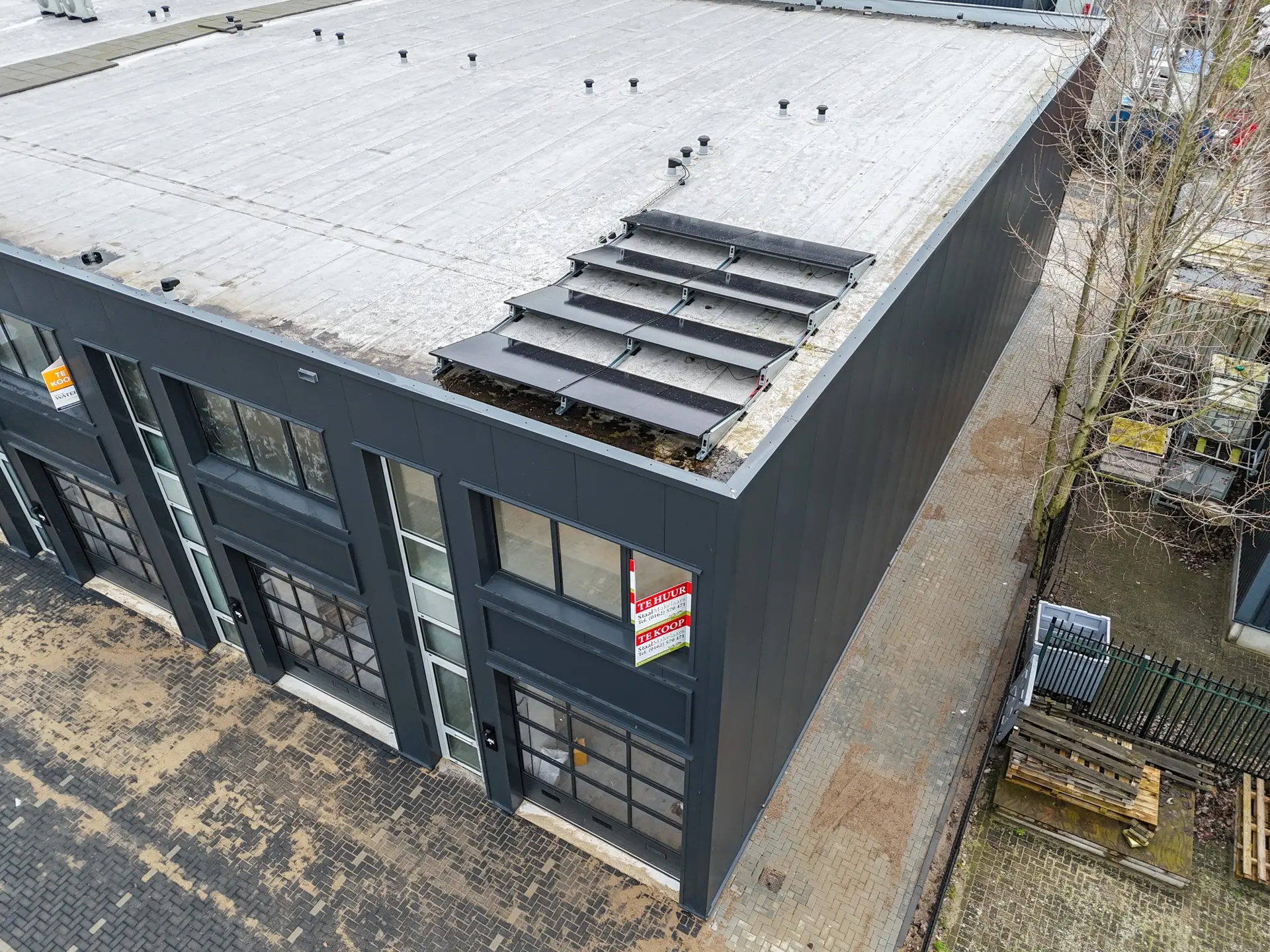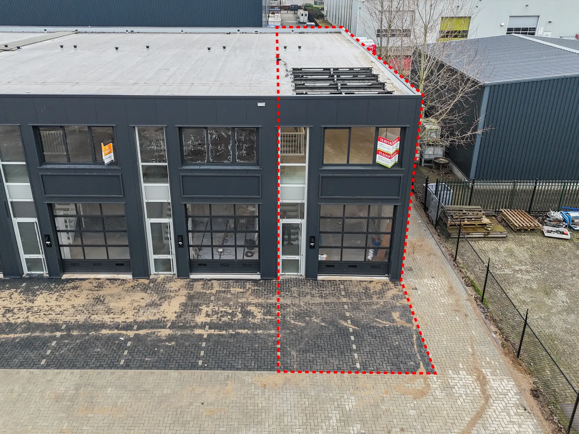 Bedrijfsunit met bedrijfsruimte van ca. 56 m², kantoorruimte van ca. 56 m2, 2 eigen parkeerplaatsen, sanitair, pantry en verdere aanhorigheden.