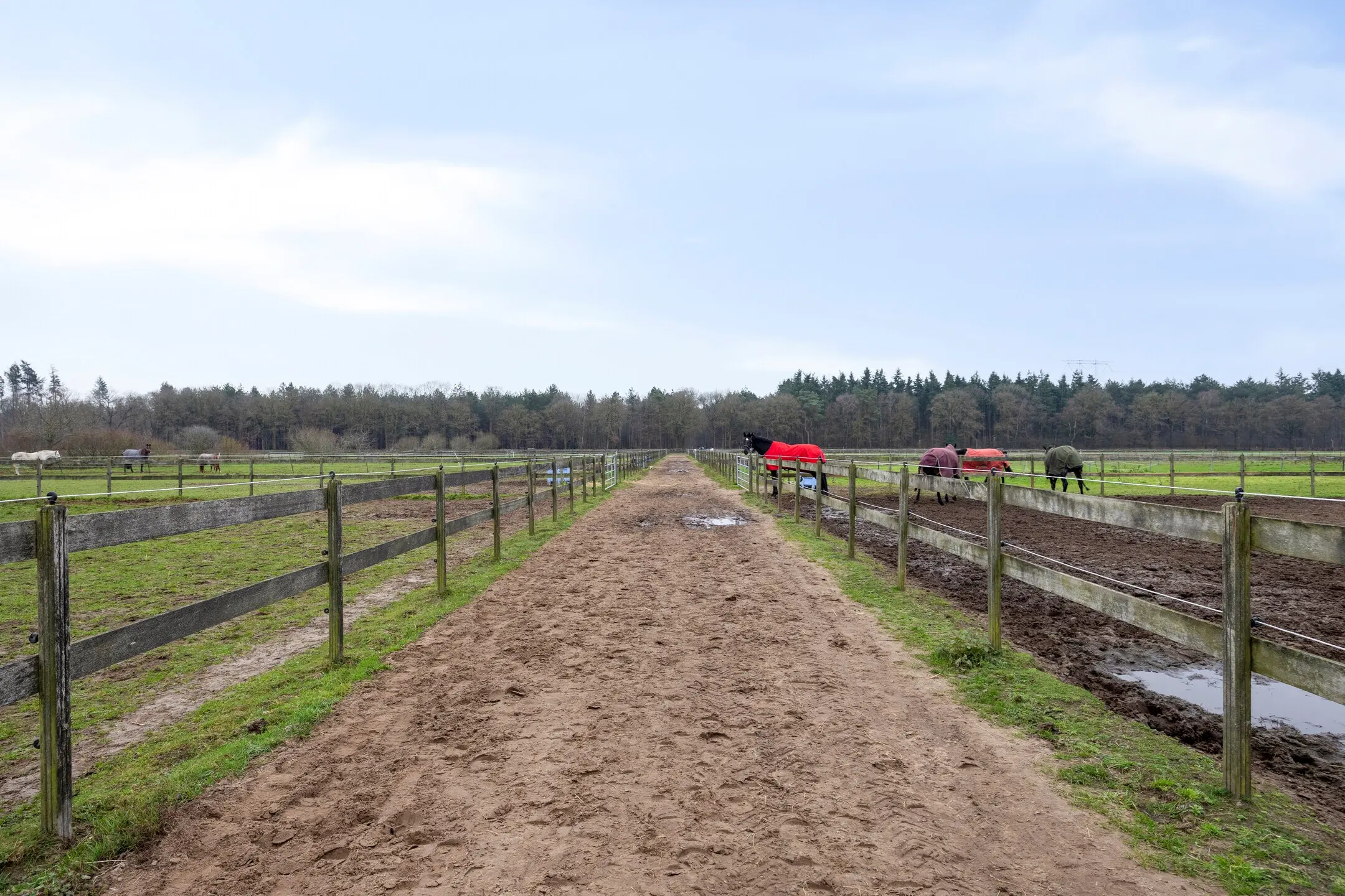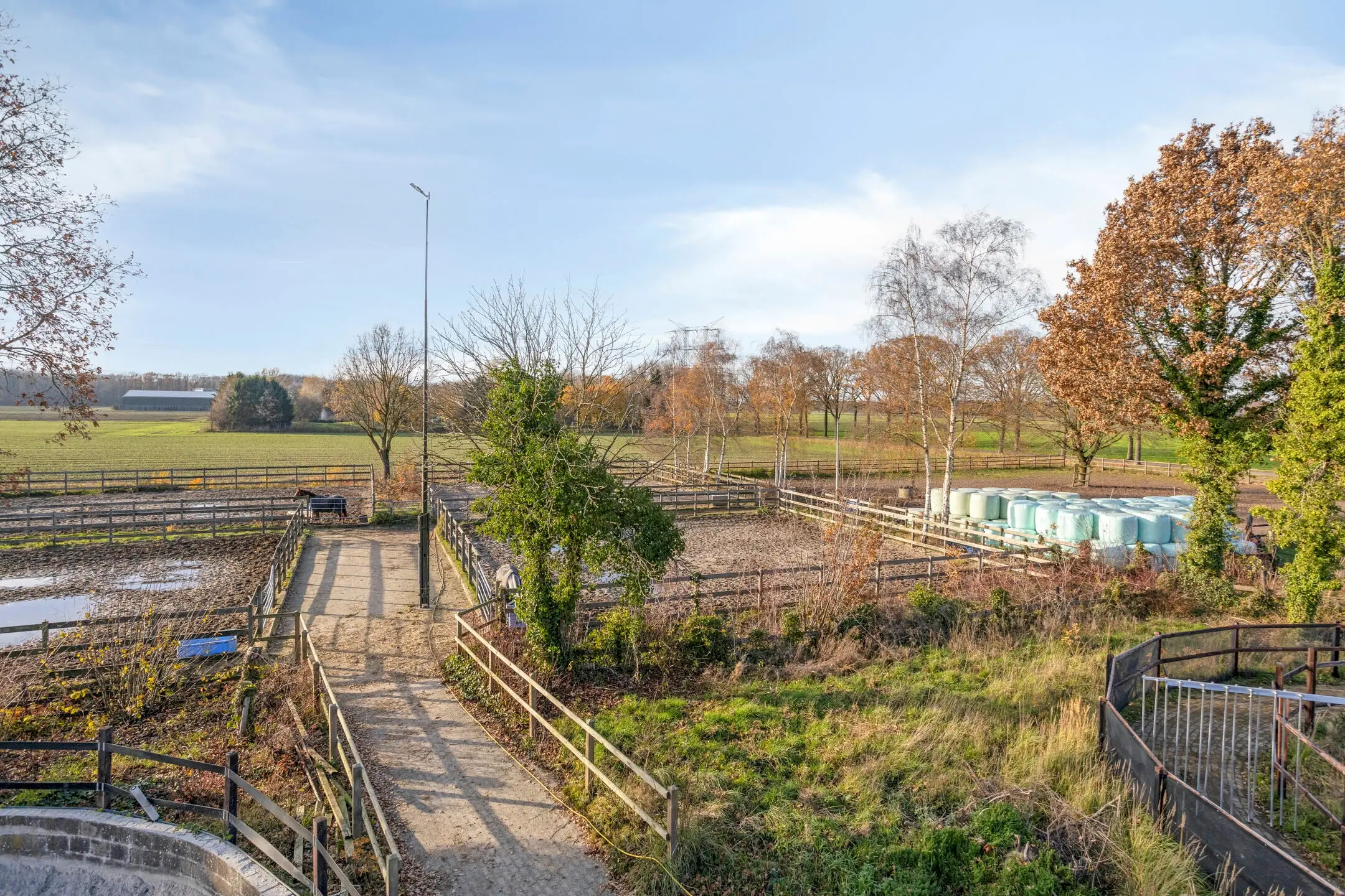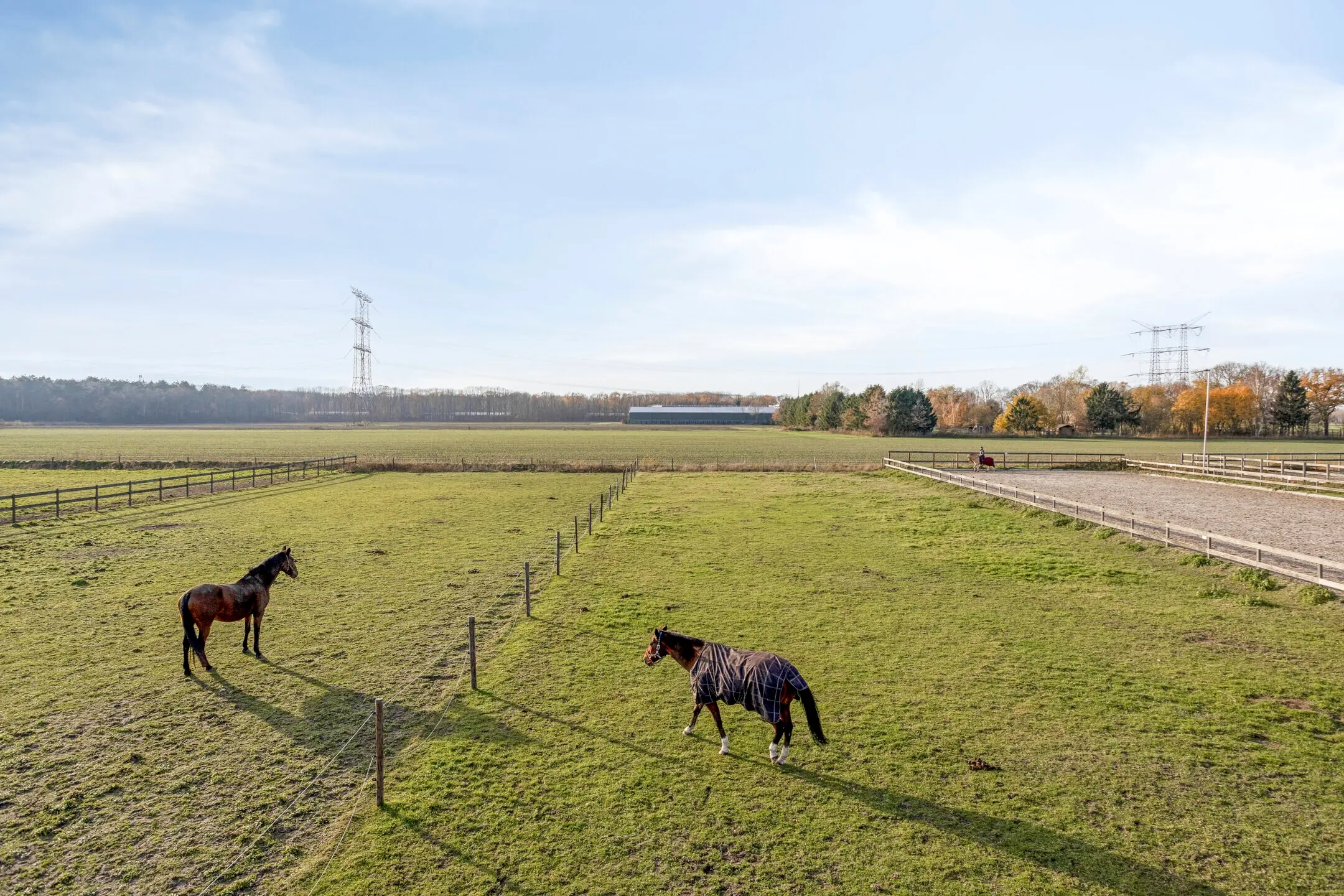 Rondom de opstallen sluiten de weilanden en paddocks logisch aan, waardoor routing met paarden veilig en overzichtelijk blijft. De ligging van de accommodatie, omringd door open landschap, zorgt voor een gevoel van ruimte, rust en overzicht. Het erf is functioneel ingericht, met voldoende ruimte voor opslag, manoeuvreren en dagelijkse activiteiten. Aan de voorzijde bevindt zich een entree met zicht op de springweide en paddocks, wat bij aankomst direct een representatieve indruk geeft.
