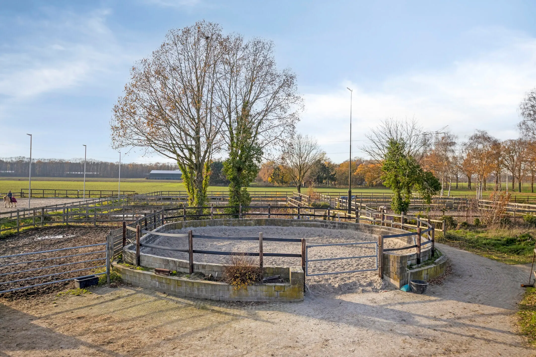 Voor training en beweging zijn aanwezig: een longeercirkel met Wijlaars-bodem en vernieuwde drainage (2024), een vier-paards stapmolen (2024), een buitenpiste van ca. 20 × 60 m, 6 paddocks met verlichting en een springweide. Aan de achterzijde liggen een mestvaalt met betonnen vloer en wanden en twee sleufsilo’s. Deze opzet maakt de locatie geschikt voor uiteenlopende vormen van paardenhouderij, van pensionstalling en instructie tot sport &