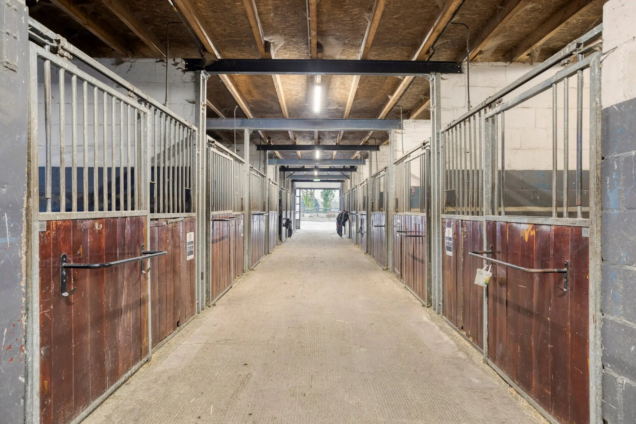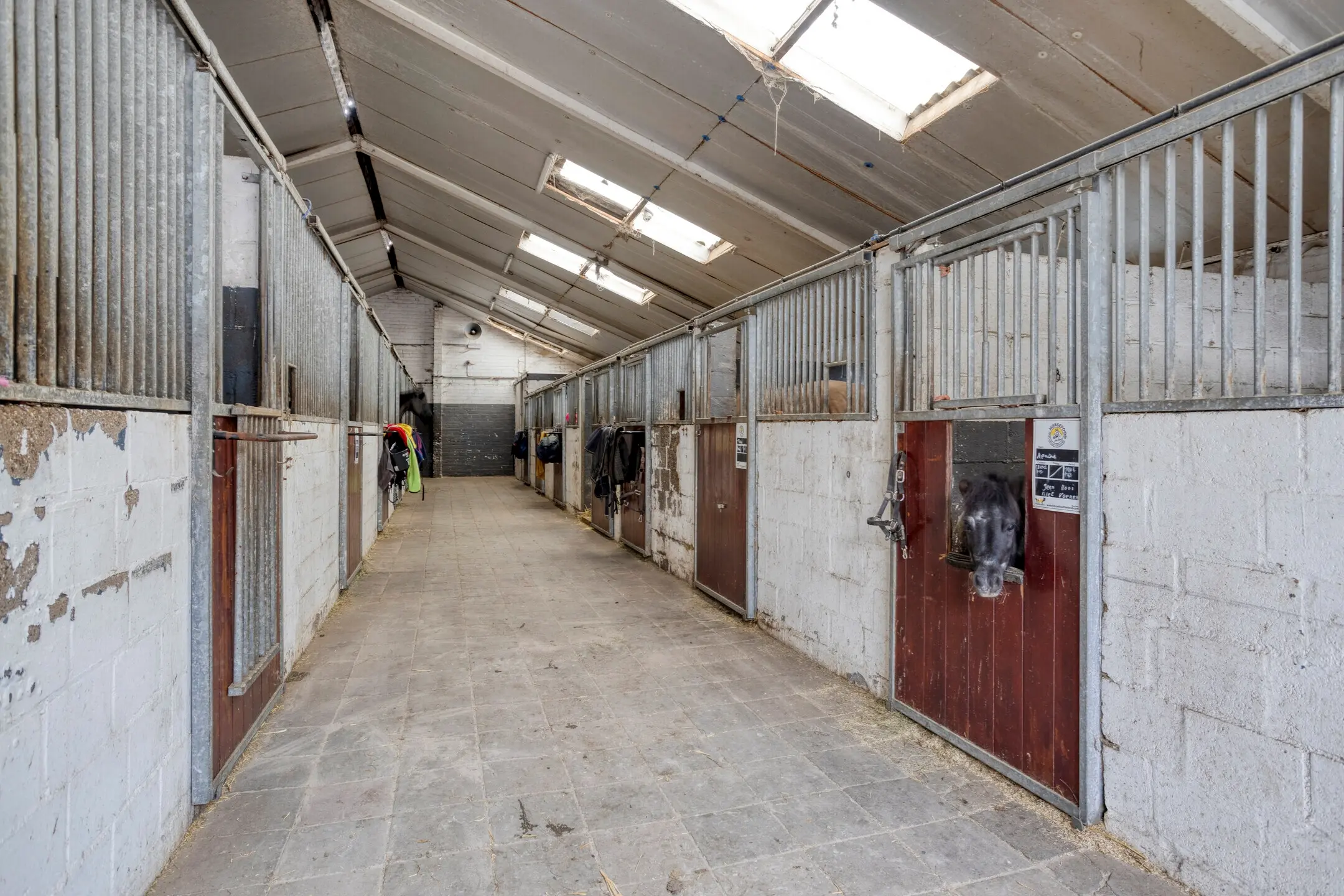 In totaal zijn er 43 paardenboxen verdeeld over vier afdelingen (13 – 5 – 17 – 10). De boxen zijnuitgevoerd met betonnen vloeren, metselwerk achterwanden, hardhouten of gegalvaniseerde fronten en geïsoleerde daken op stalen spanten.