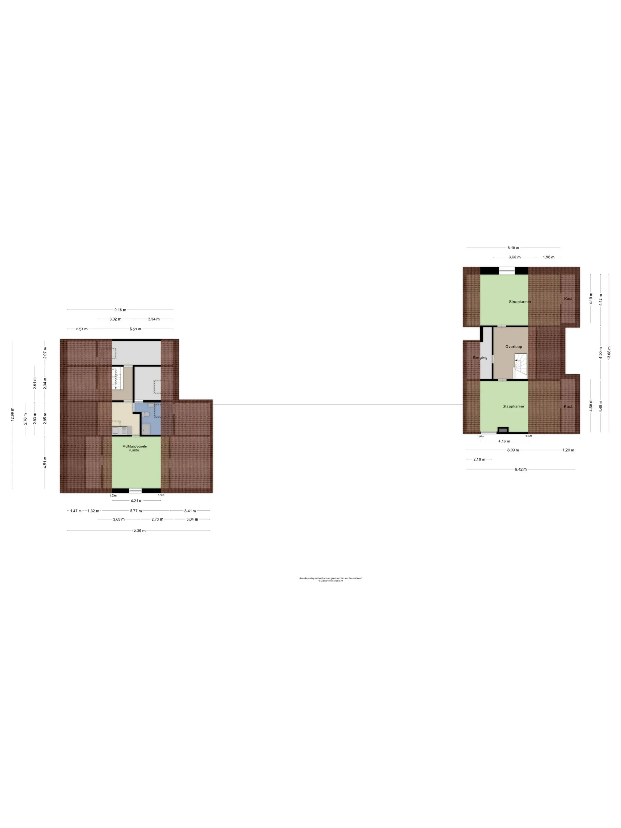 De verdieping omvat twee slaapkamers met bergruimte onder de kap, een overloop en de cv ruimte met twee cv-ketels (Nefit, 2011) en een boiler. Het woonhuis is eenvoudig uitgevoerd, maar biedt een functionele woonomgeving direct naast de paardenaccommodatie, ideaal voor dagelijks toezicht en aanwezigheid op het erf.