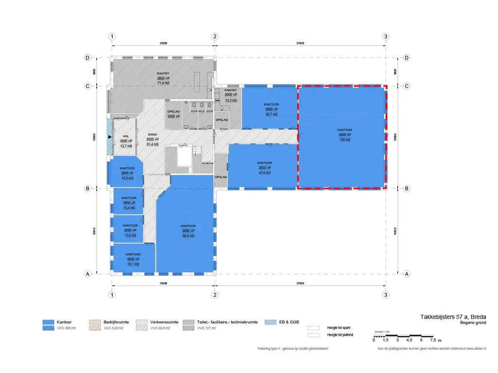 De kantoorruimtes zijn gesitueerd in het kantoorverzamelgebouw gelegen aan Takkebijsters 57A in Breda op het representatieve bedrijventerrein Moleneind-Oost,