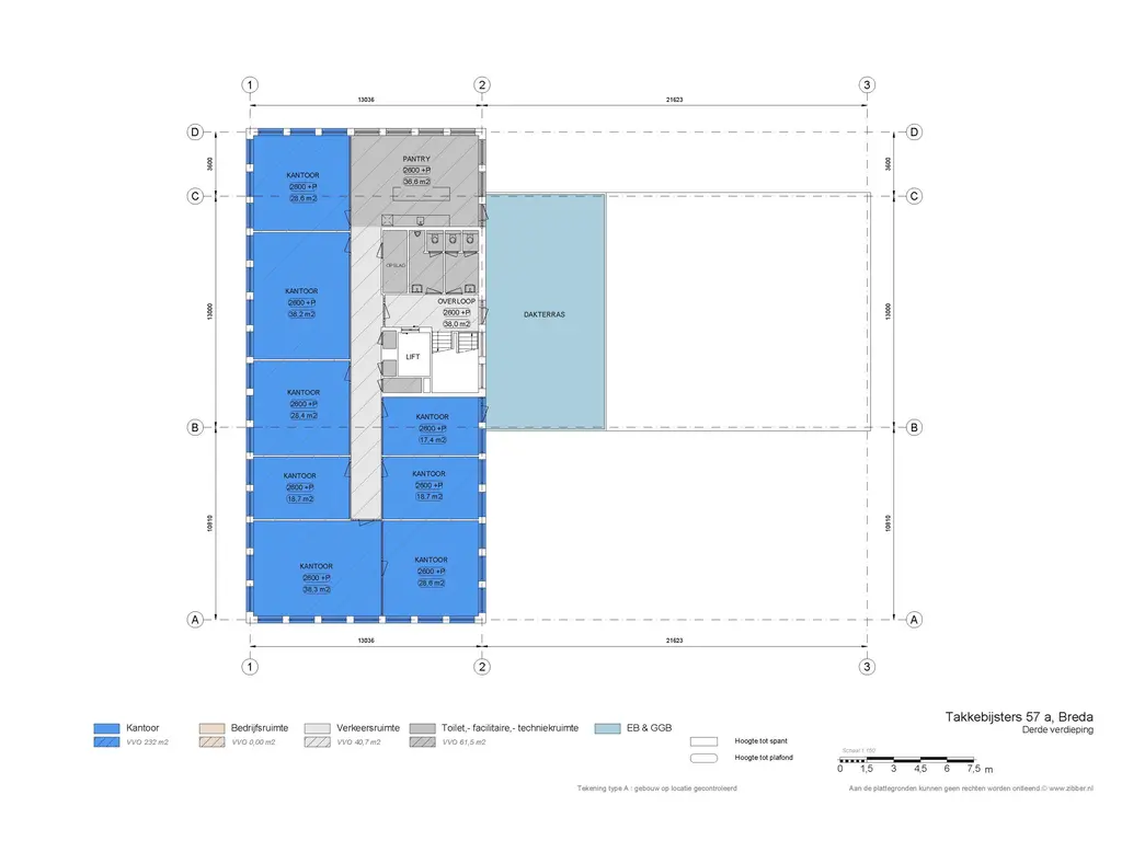 De kantoorruimte is gesitueerd in het kantoorverzamelgebouw gelegen aan Takkebijsters 57A in Breda op het representatieve bedrijventerrein Moleneind-Oost,
