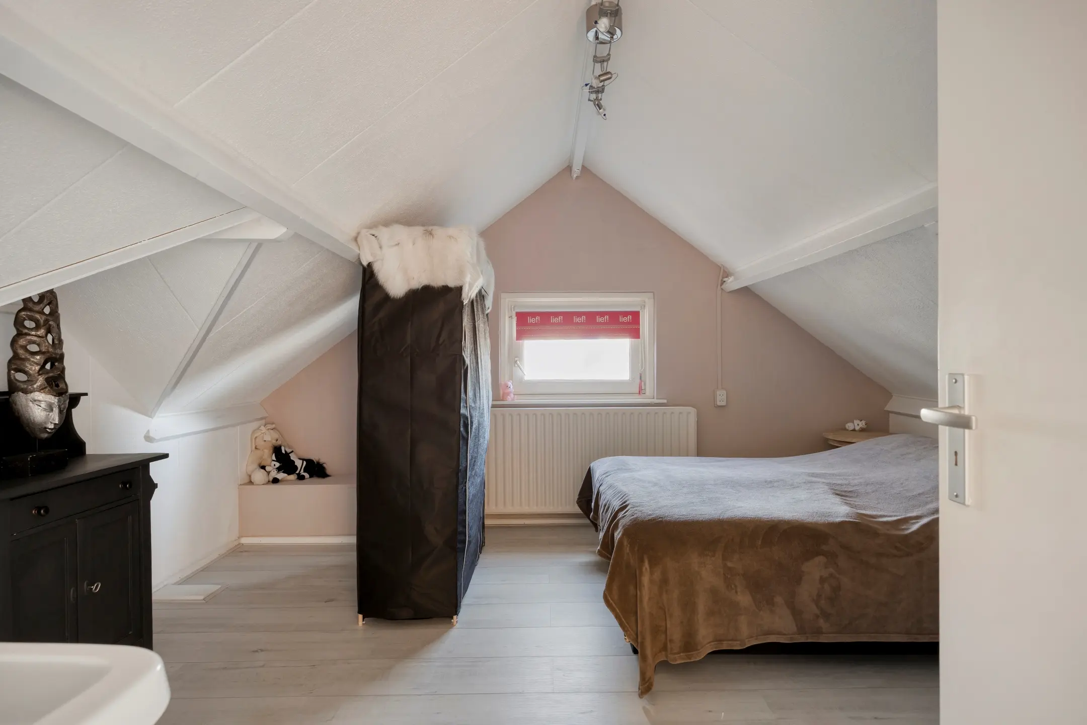 Er bevinden zich twee ruime slaapkamers aan weerszijden van de overloop. Er is één slaapkamer voorzien van een dakraam en de andere slaapkamer heeft tevens een raam, fijn om het daglicht binnen te laten en de kamer te ventileren. Beide kamers worden verwarmd middels radiatoren. Daarnaast is er vanuit één van de slaapkamers toegang tot twee bergruimtes. Deze slaapkamer is tevens voorzien van een wastafel.