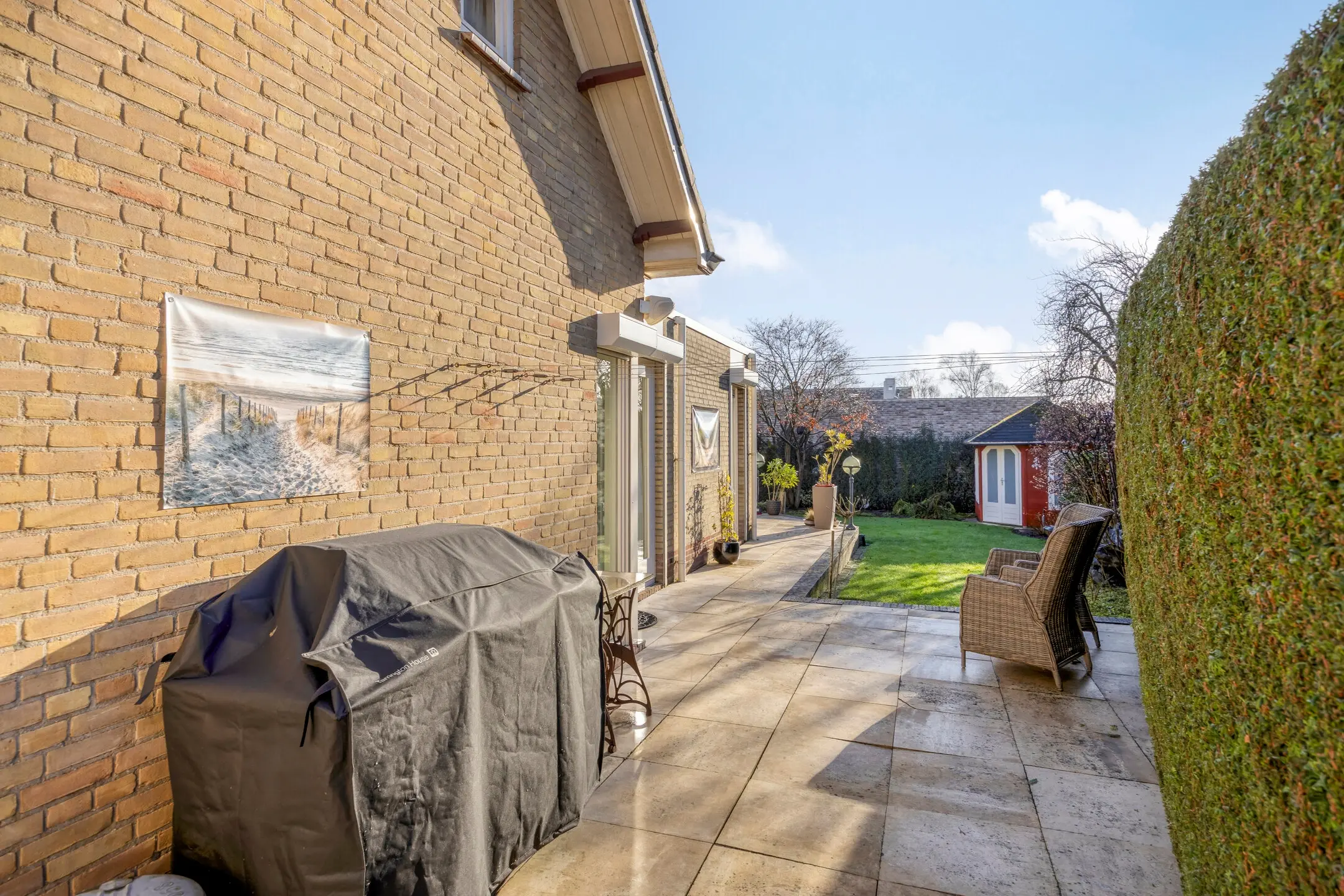 In het aanwezige tuinhuis kunt u eenvoudig tuinmeubilair of (tuin)materieel opbergen. Daarnaast is er een beregeningsinstallatie aanwezig.
